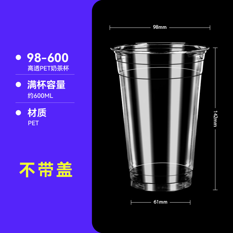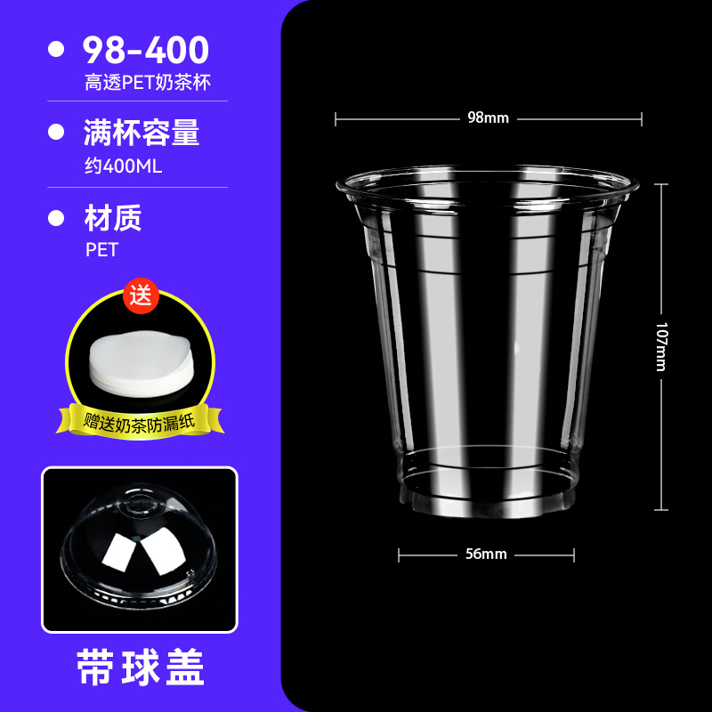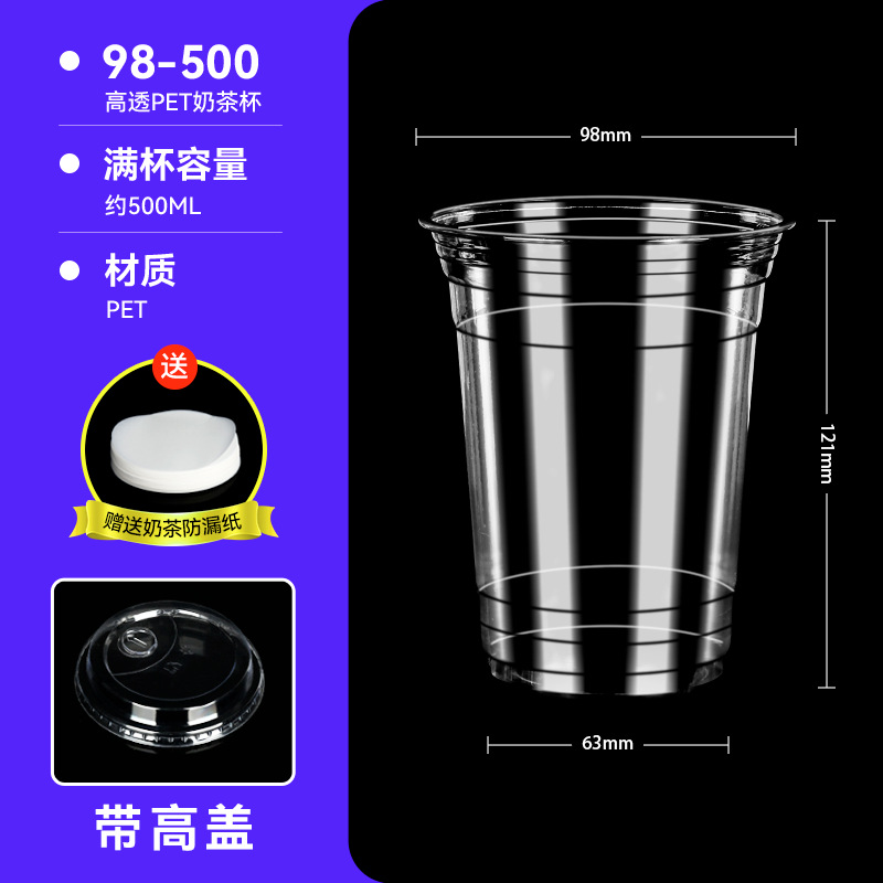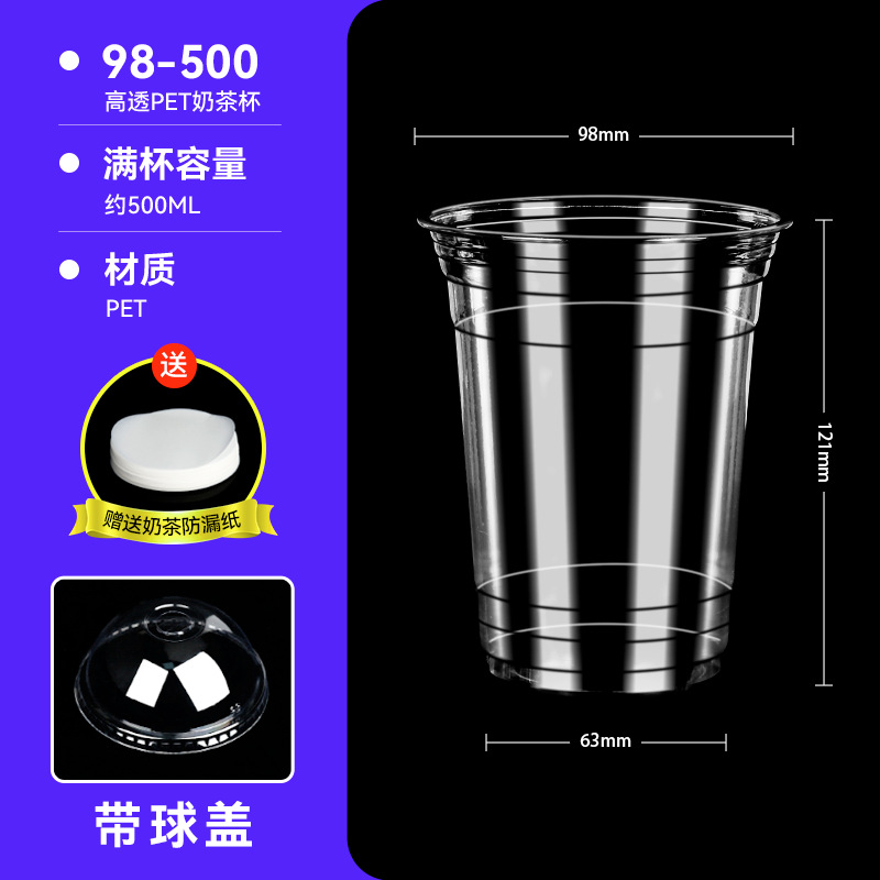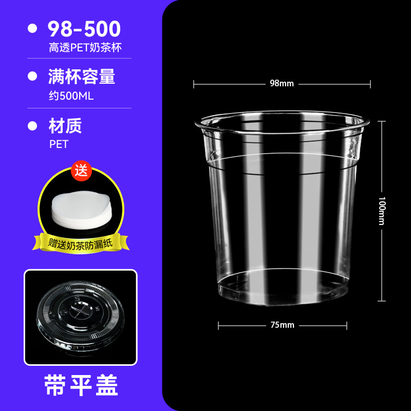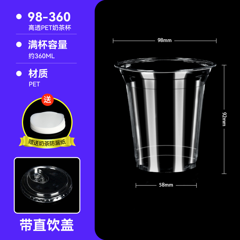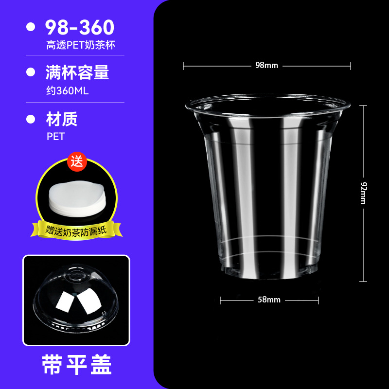 98구경 밀크티컵, 레몬티 PET 콜드드링크컵, 뚜껑이 있는 커피팻팻컵, 누수방지종이