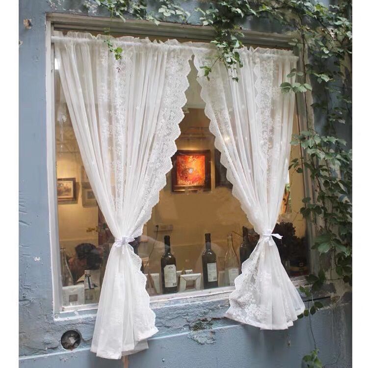 한국 목가적 레이스 물결 모양의 완성된 흰색 거즈 커튼 흰색 모래 거실 발코니 베드 창 미국 컨트리 스타일 커튼스토어 가기