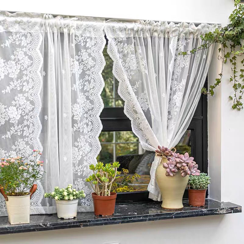 한국 목가적 레이스 물결 모양의 완성된 흰색 거즈 커튼 흰색 모래 거실 발코니 베드 창 미국 컨트리 스타일 커튼