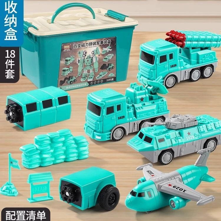 어린이 변형 로봇 자기 조립 DIY 빌딩 블록 장난감 조립 변형 엔지니어링 차량 2 소년 3 세 6스토어 가기