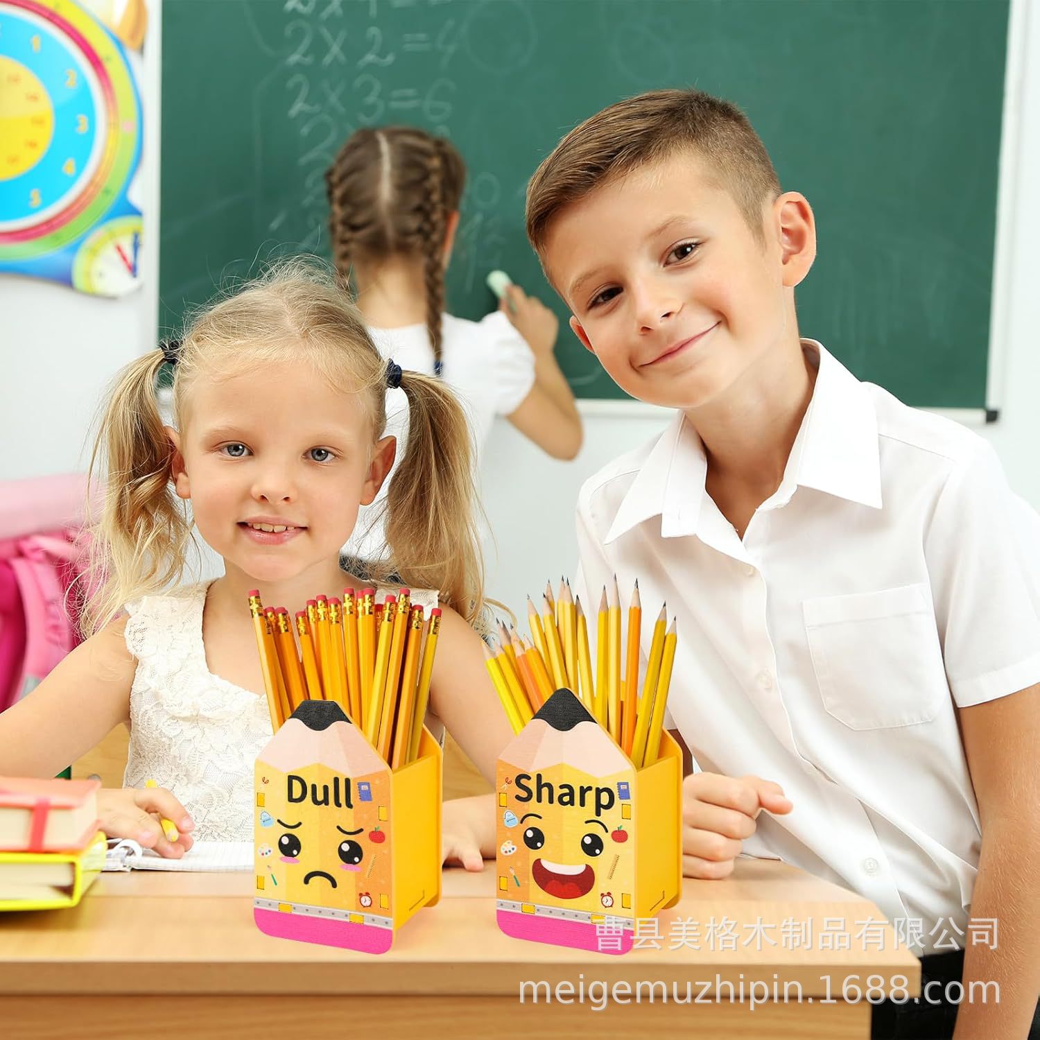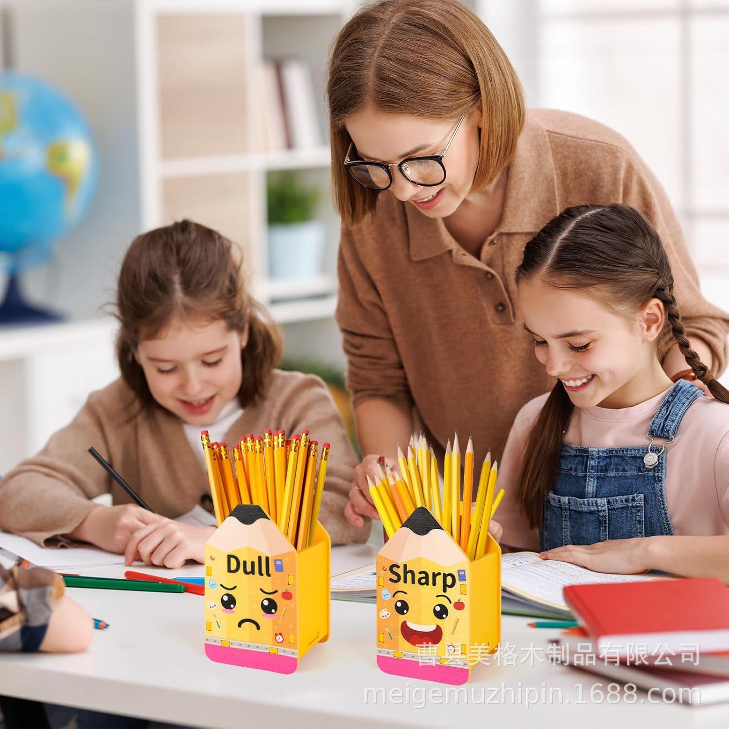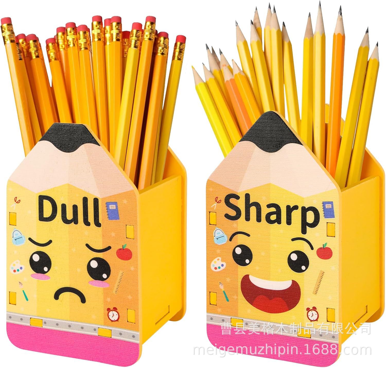 나무 연필 디스펜서 이동식 학생 용품 연필 보관 상자 나무 사무실 책상 연필 모양의 펜 홀더스토어 가기