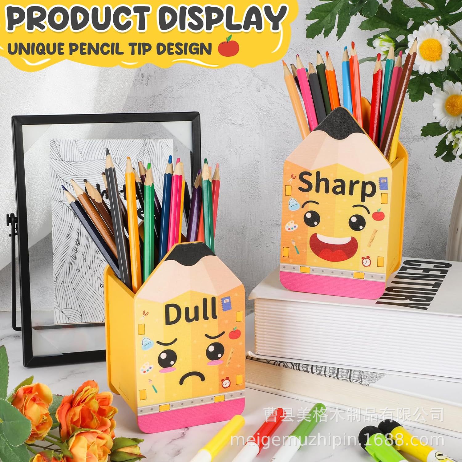 나무 연필 디스펜서 이동식 학생 용품 연필 보관 상자 나무 사무실 책상 연필 모양의 펜 홀더