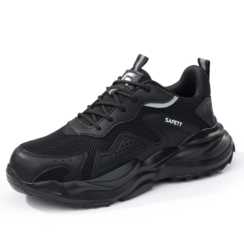 남성용 가볍고 통기성이 뛰어난 노동 보호 신발, 펑크 방지, 스매싱 방지, 편안하고 내마모성 신발, 여름 검정색 안전 보호 작업 신발