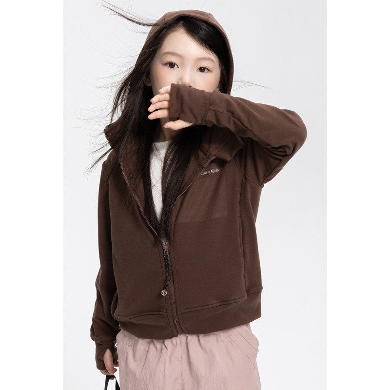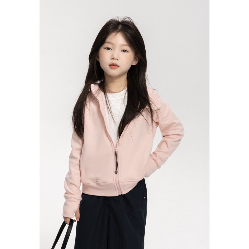 여자 DeRong 후드 자켓 2025 가을 새로운 어린이 지퍼 카디건 스웨터 중대형 아동 캐주얼상의