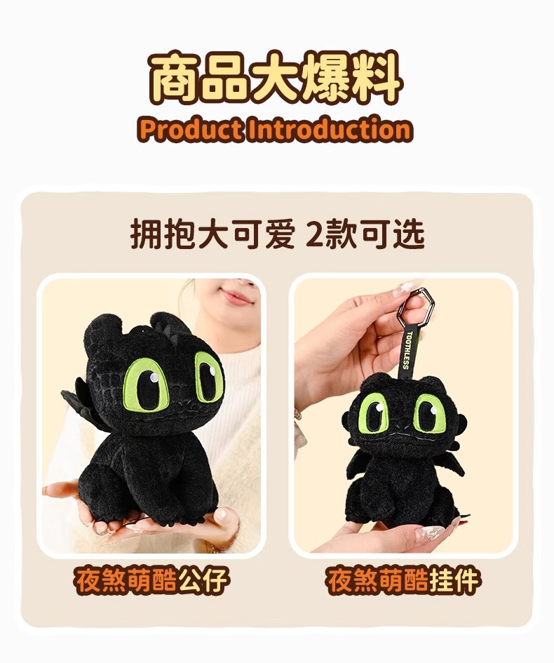 정품 드래곤 훈련 만화 인형 키 체인 펜던트 Toothless Nighthawk 만화 봉제 인형 학교 가방 펜던트