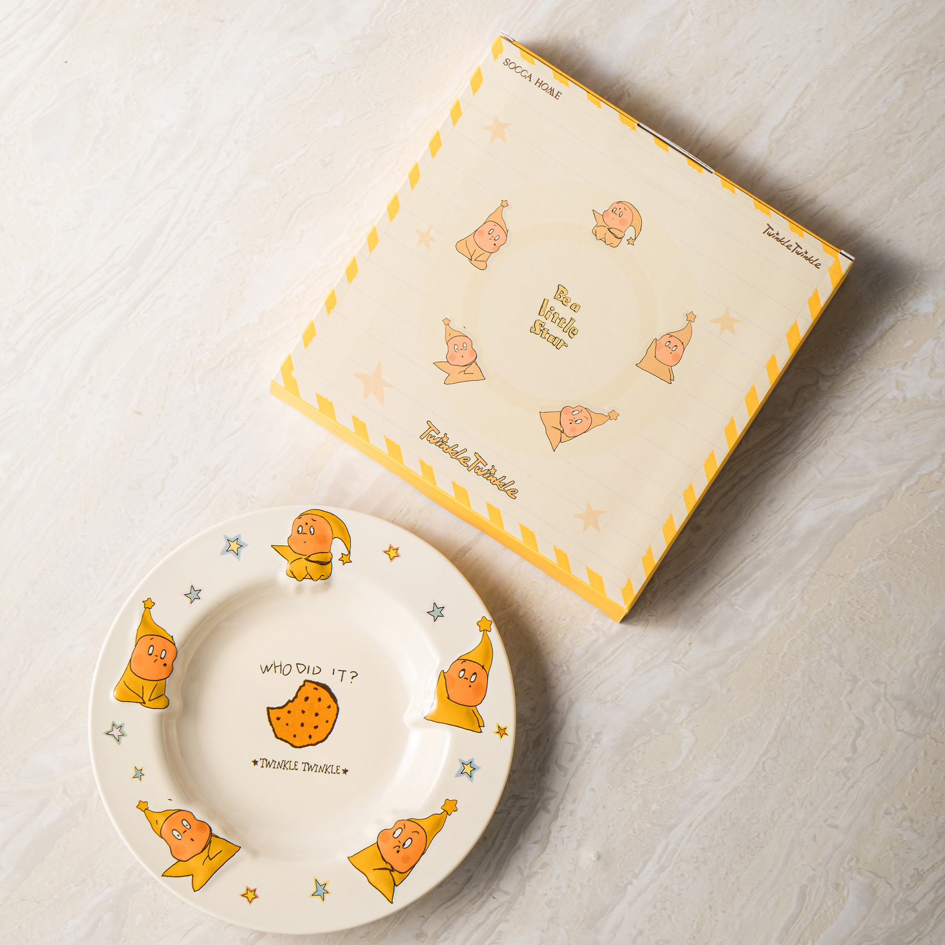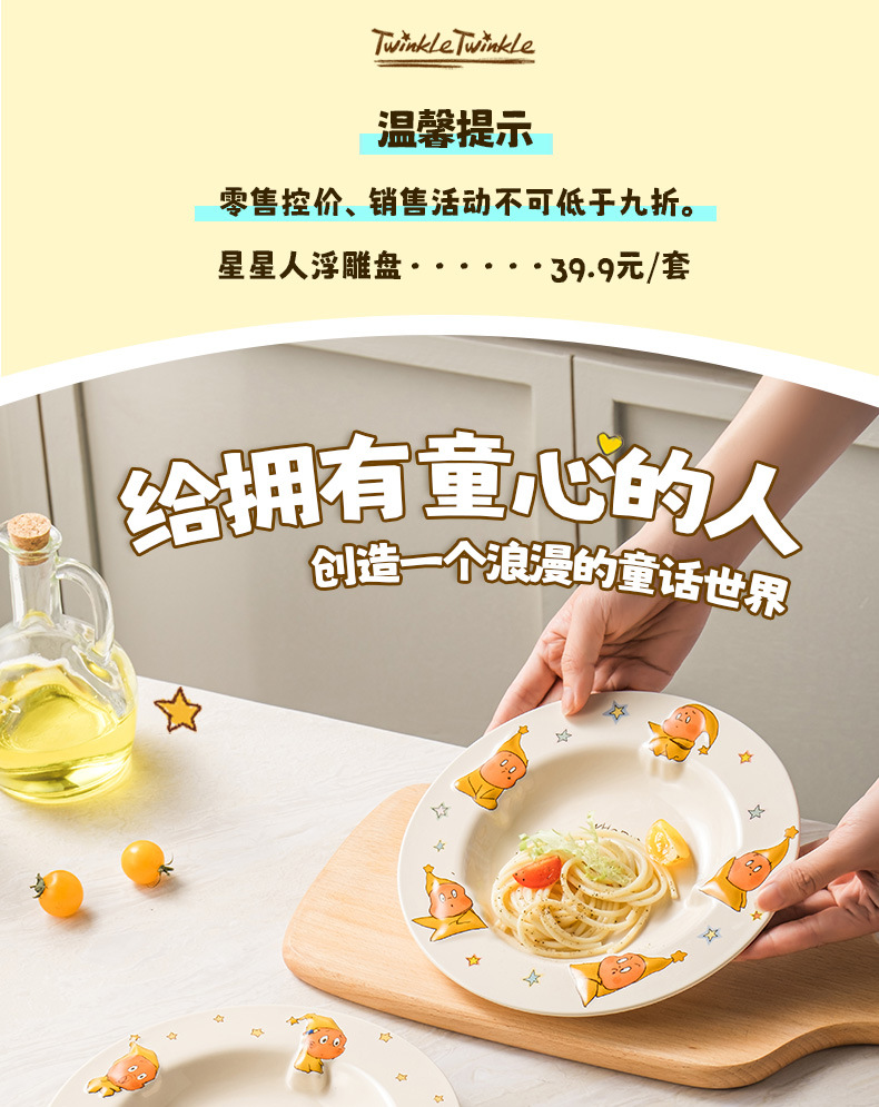 SOCCA 스타맨 세라믹 디너 플레이트, 양각 깊은 접시, 귀엽고 창의적인 샐러드 디스크, 생일 선물스토어 가기