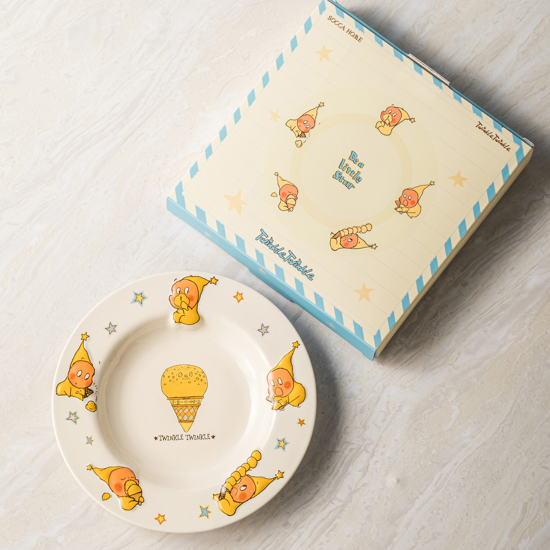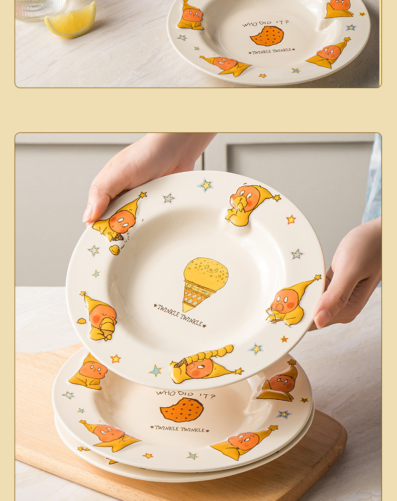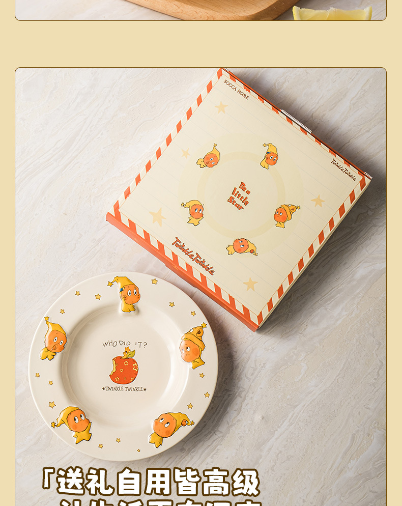 SOCCA 스타맨 세라믹 디너 플레이트, 양각 깊은 접시, 귀엽고 창의적인 샐러드 디스크, 생일 선물