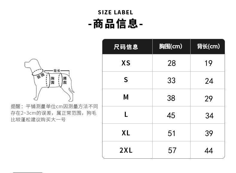 • 참고: 체중은 참고용이며 가슴 둘레와 등 길이를 기준으로 합니다.