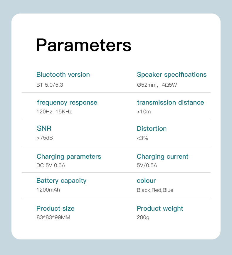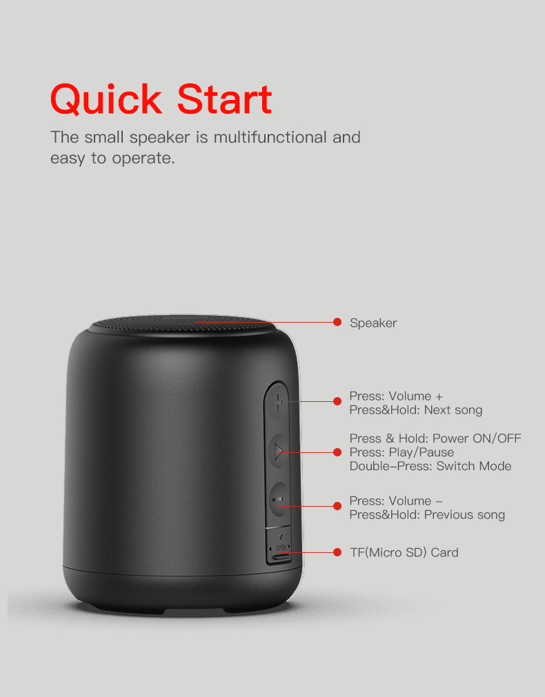 Function : Bluetooth, Handsfree, TF card,FM, TWS,IPX4