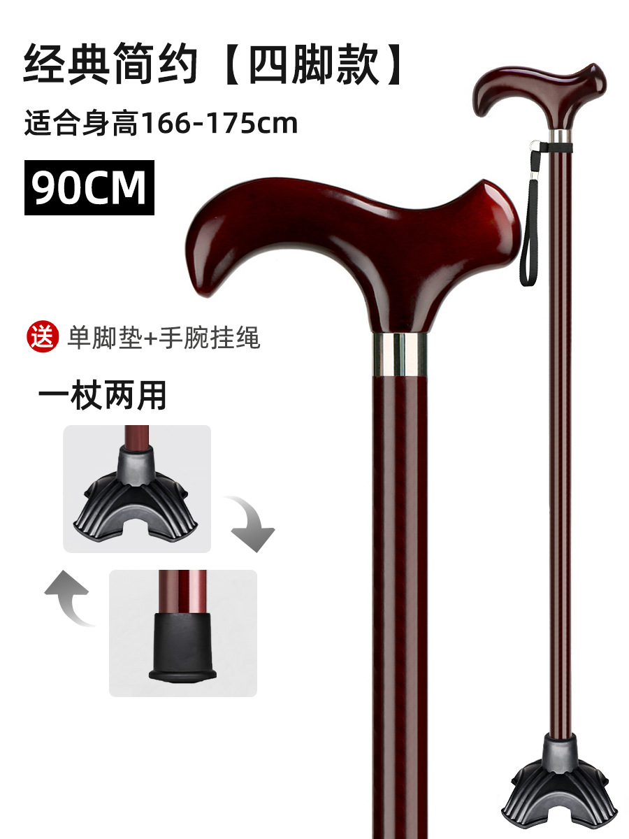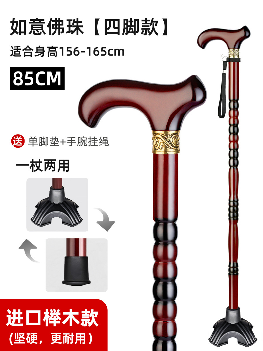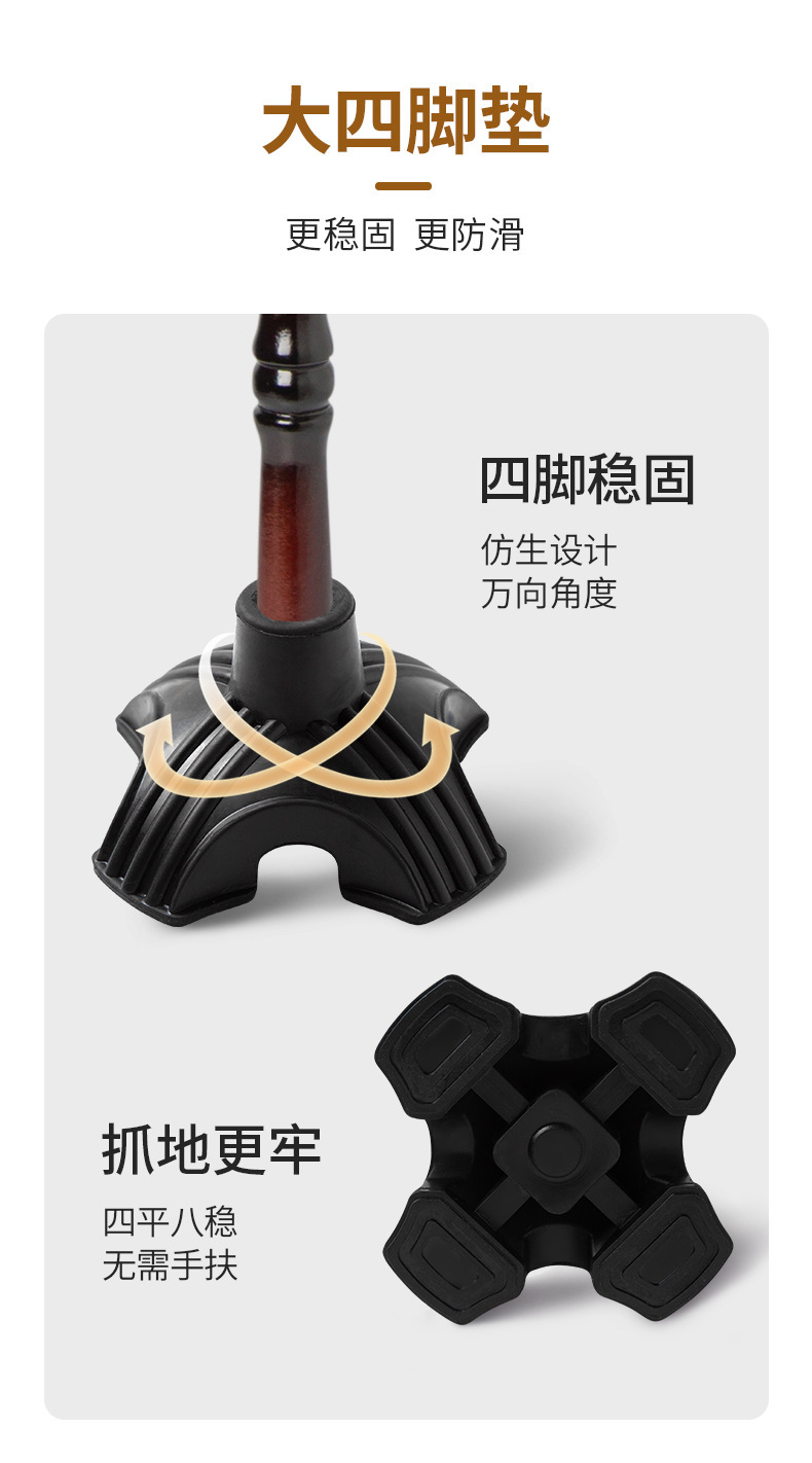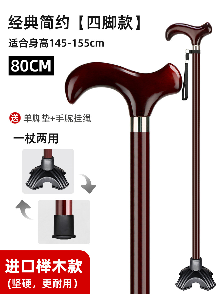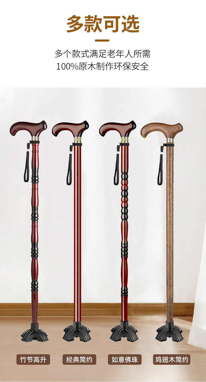 노인용 지팡이, 원목 4발 미끄럼 방지 지팡이, 노인용 경량 지팡이, 수도꼭지, 손잡이, 지팡이, 한쪽 다리로 걷기 불편함