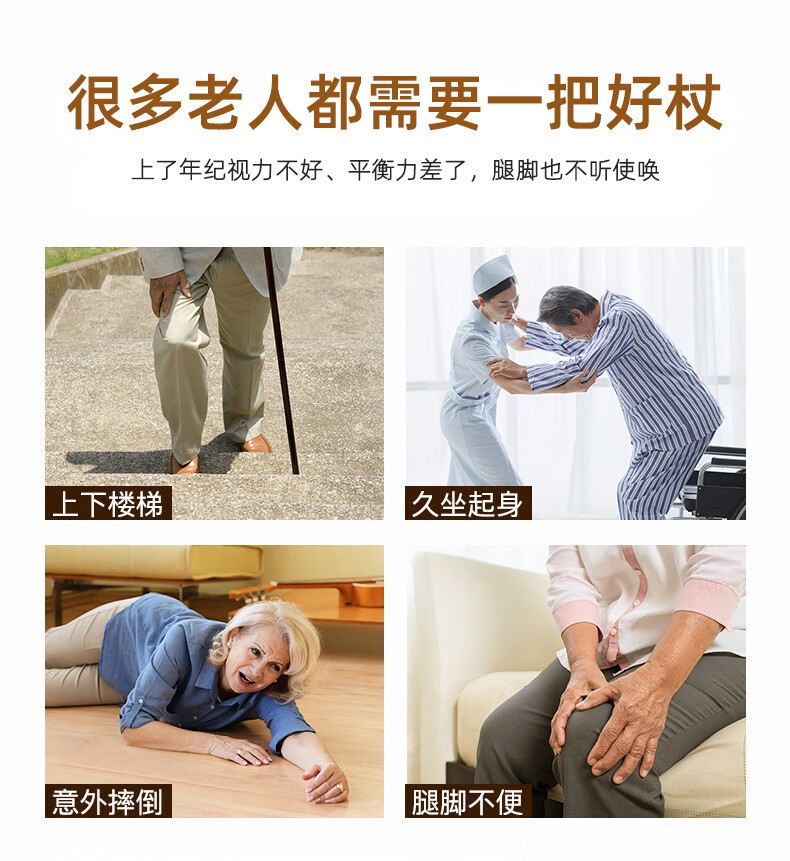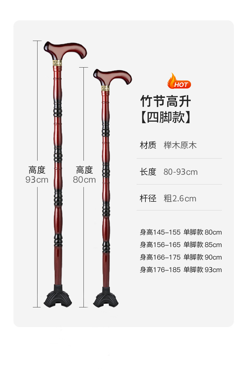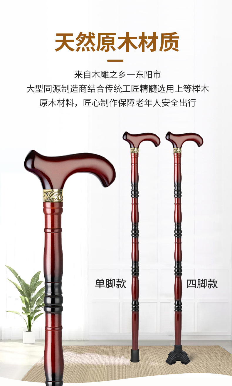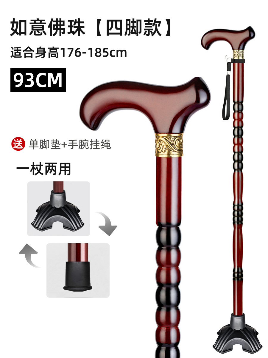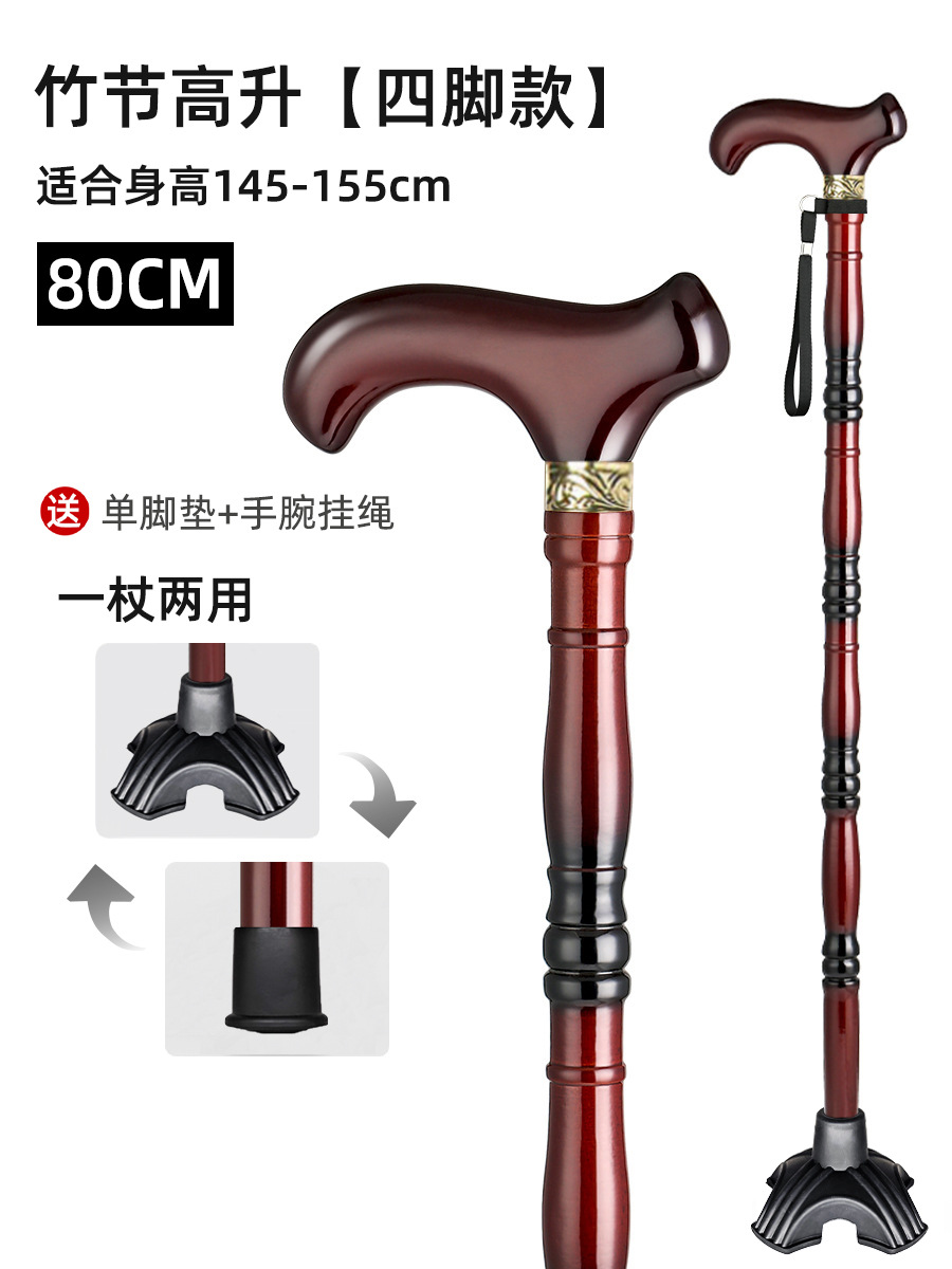 노인용 지팡이, 원목 4발 미끄럼 방지 지팡이, 노인용 경량 지팡이, 수도꼭지, 손잡이, 지팡이, 한쪽 다리로 걷기 불편함