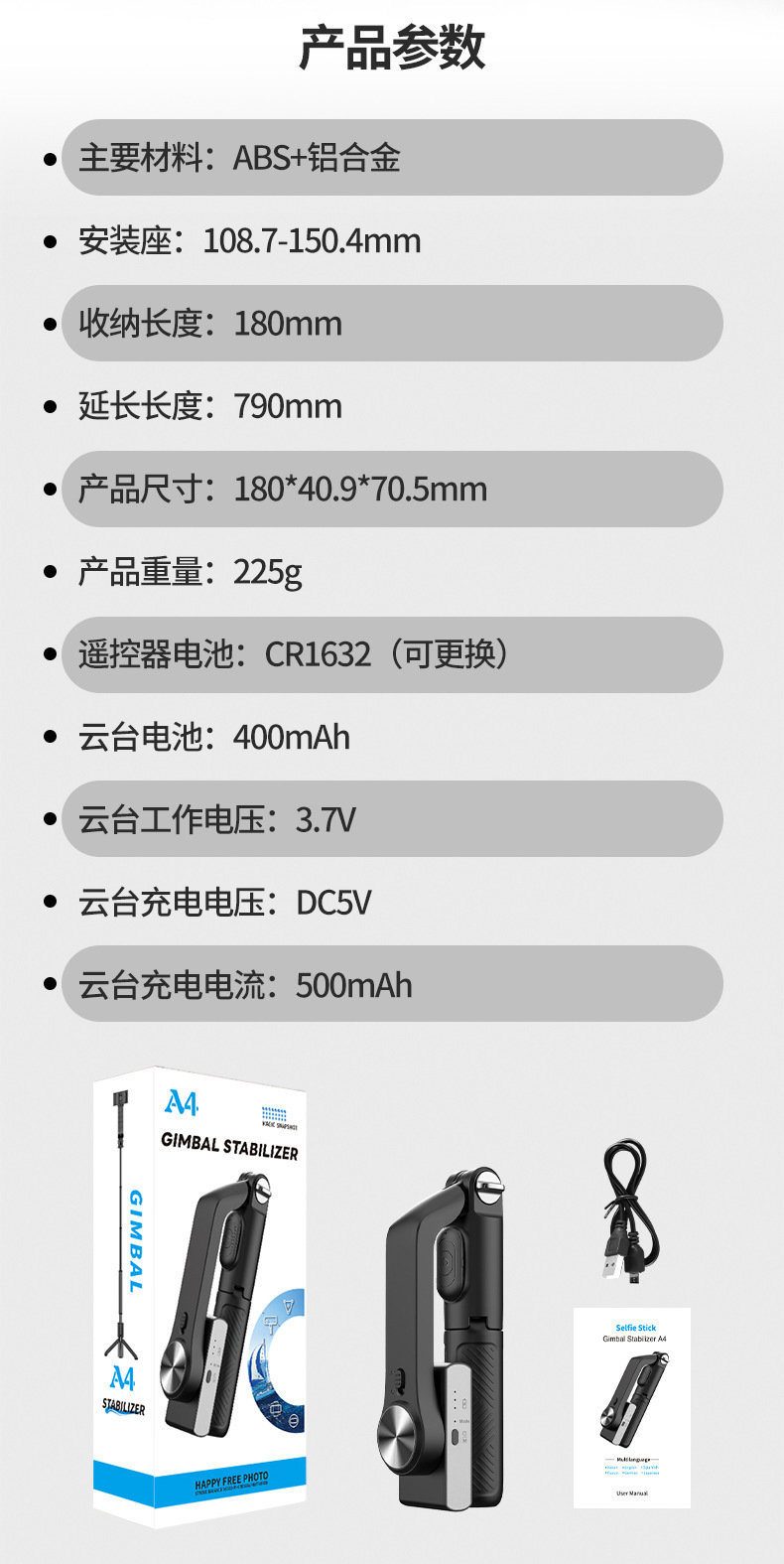 새로운 A4 단일 축 짐벌 휴대용 안정기 휴대 전화 블루투스 셀카 스틱 비디오 촬영 손떨림 방지 휴대용 삼각대