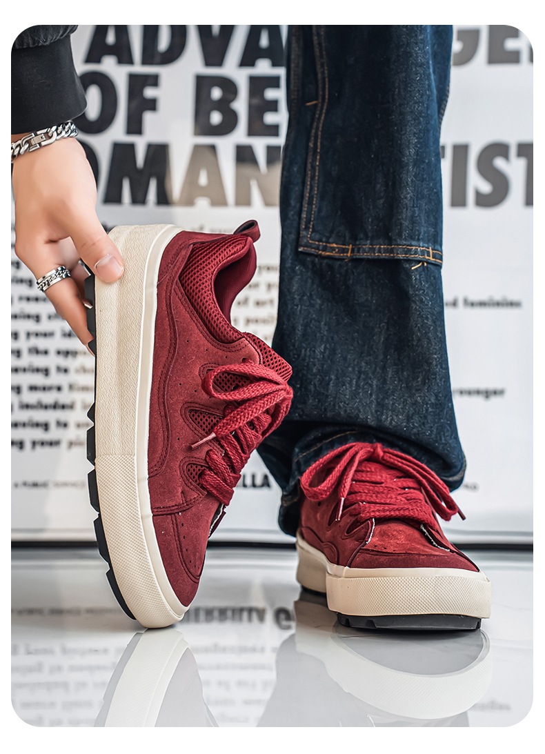인터넷 연예인 인기 남성 신발 2025 새로운 여름 통기성 학생 한국어 버전 다목적 스포츠 및 레저 앙고라 레드 운동화