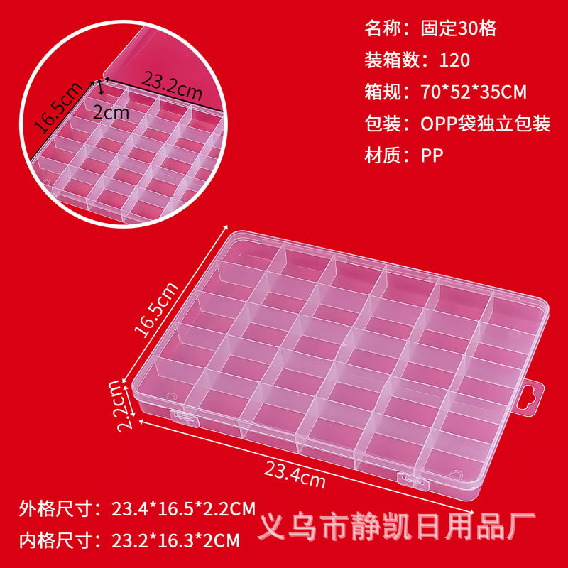 30개의 투명 PP 플라스틱 비즈 버튼 부품 정리 상자, 왁스 입자 낚시 장비 부품 보관 상자 고정