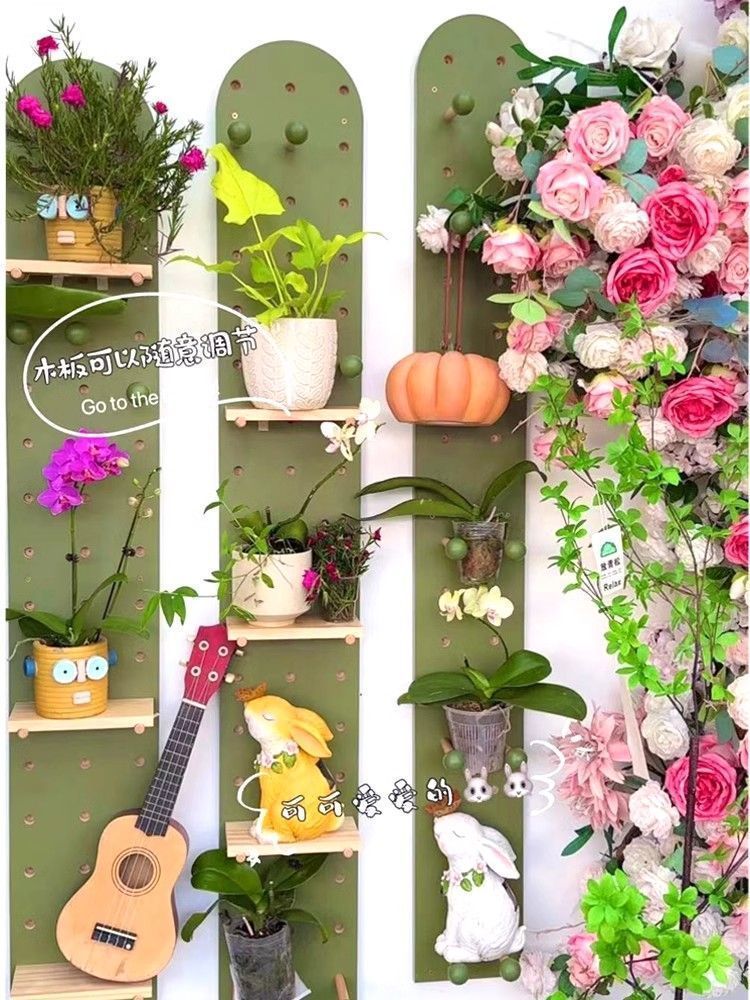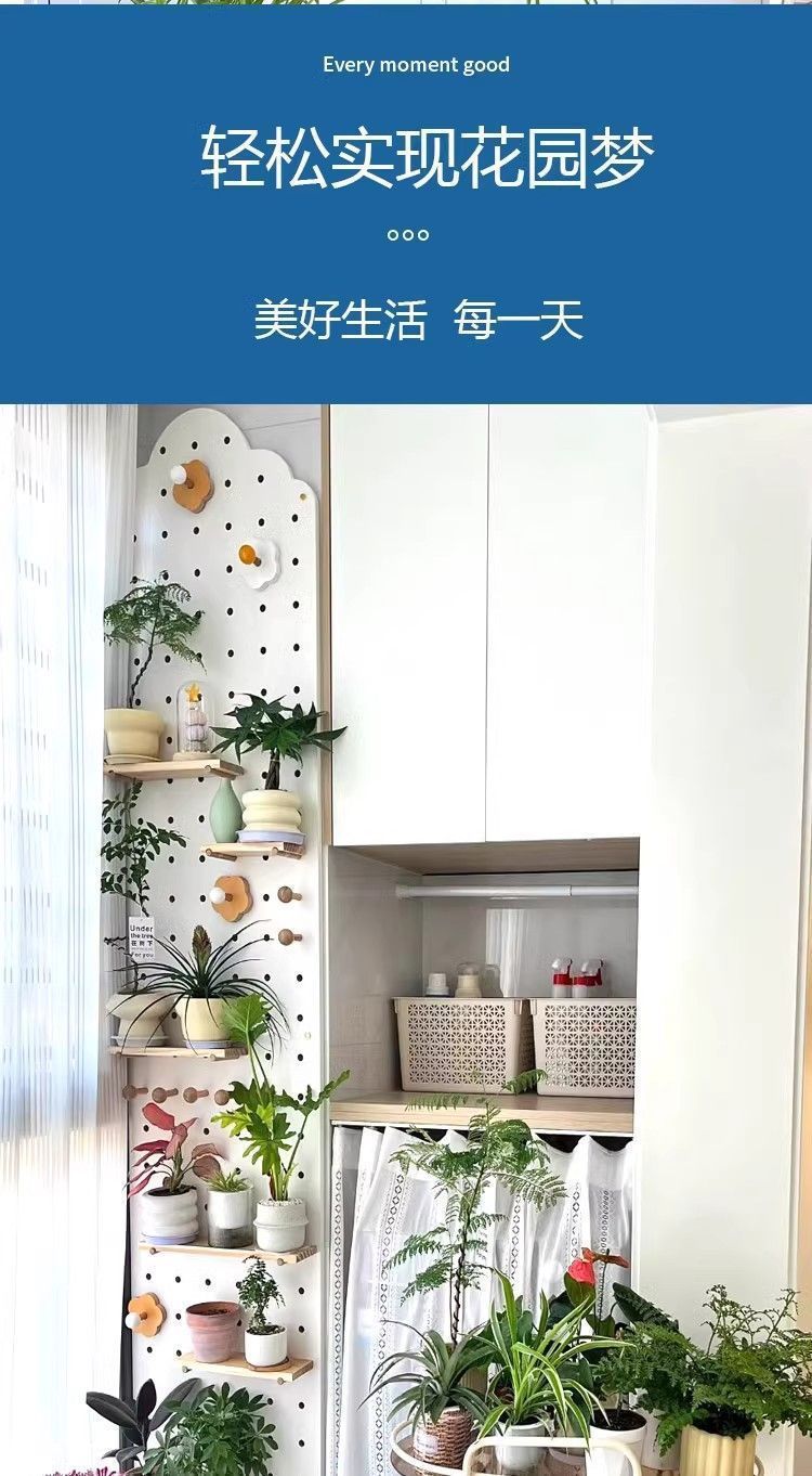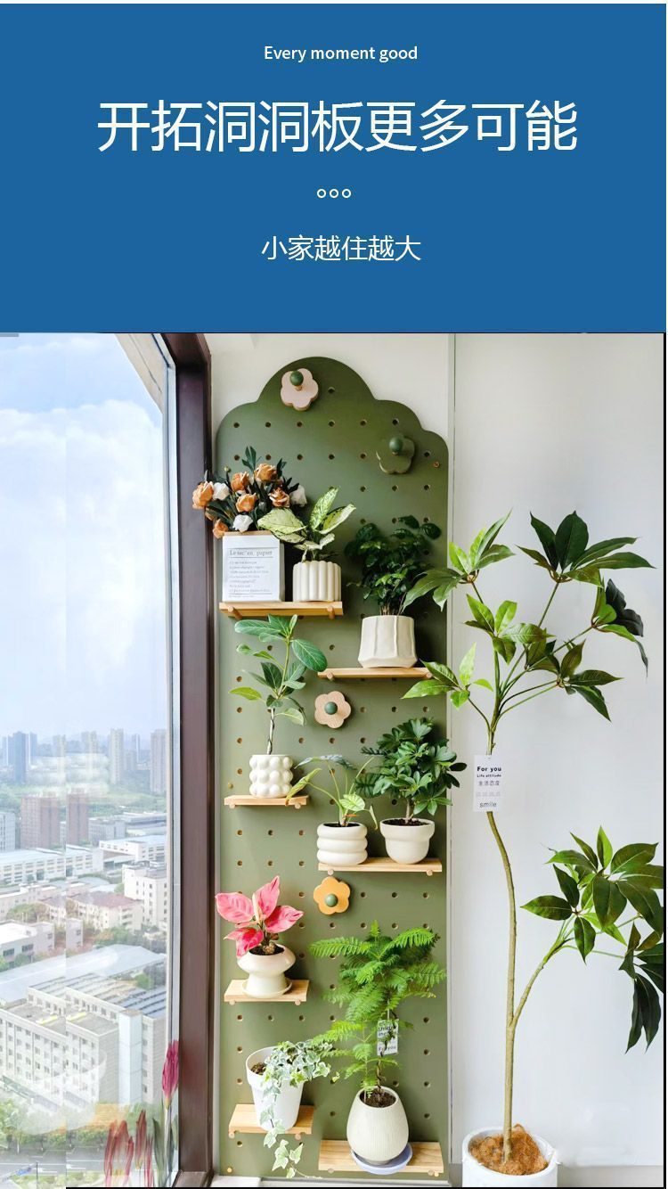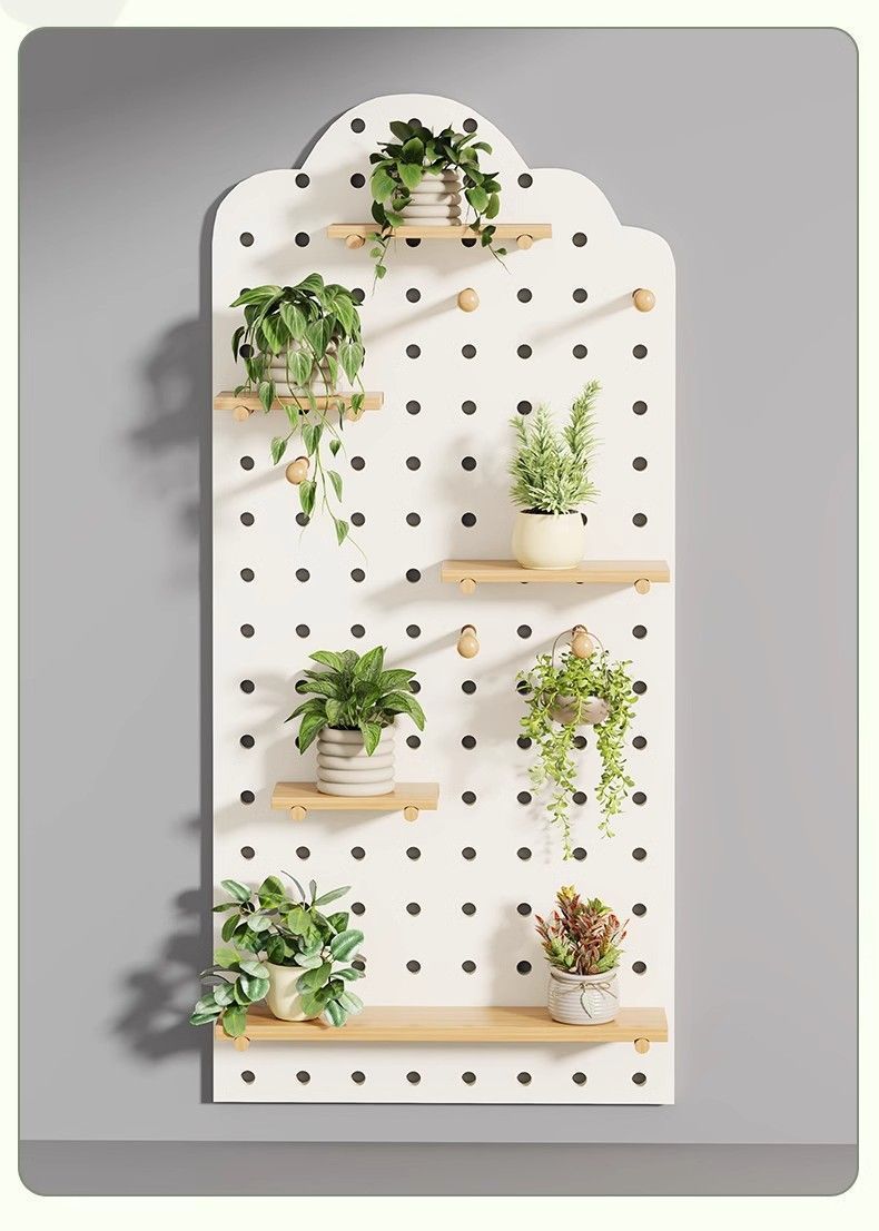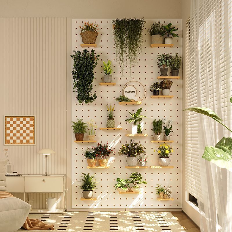 단단한 나무 구멍 보드 발코니 입구 선반 꽃 스탠드 실내 거실 창틀 벽 화분 녹색 식물 다육 식물 선반