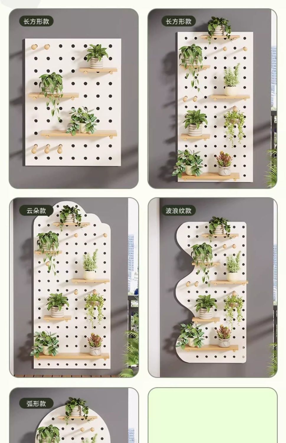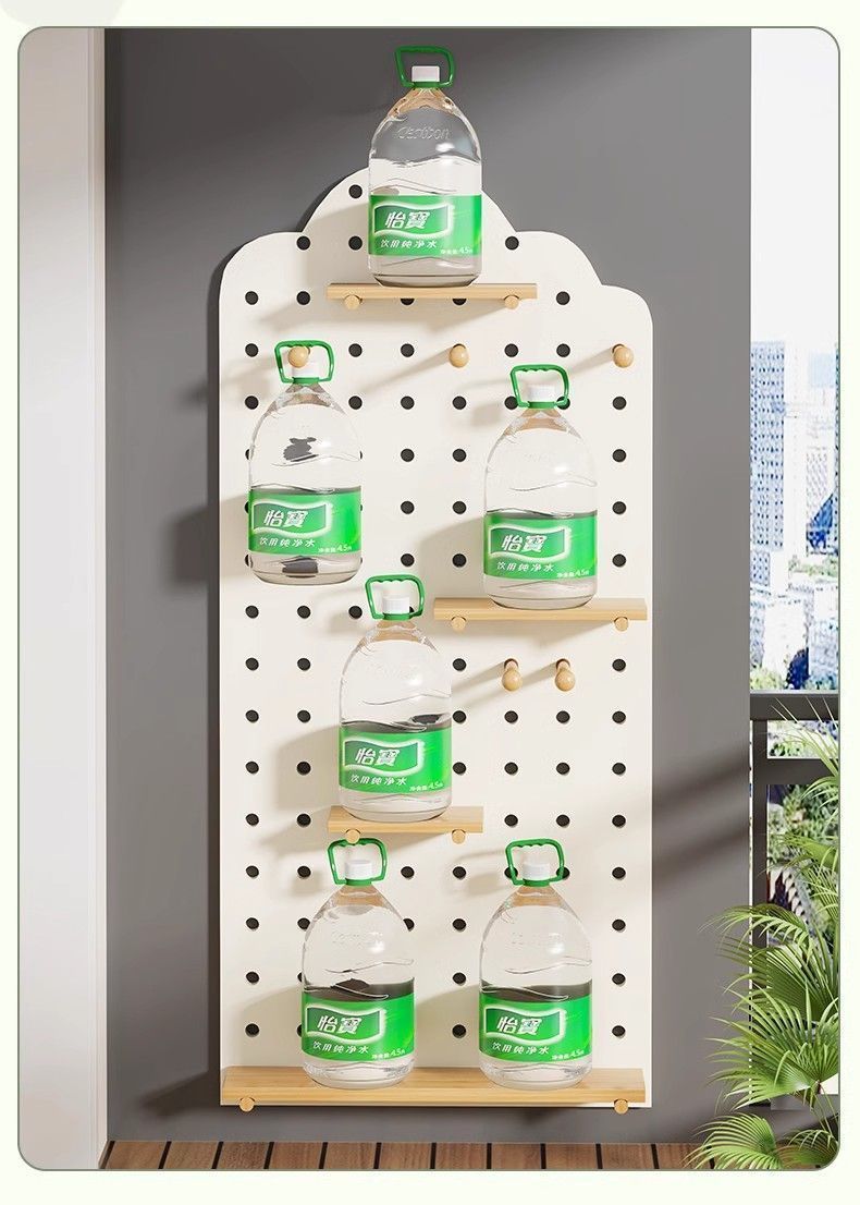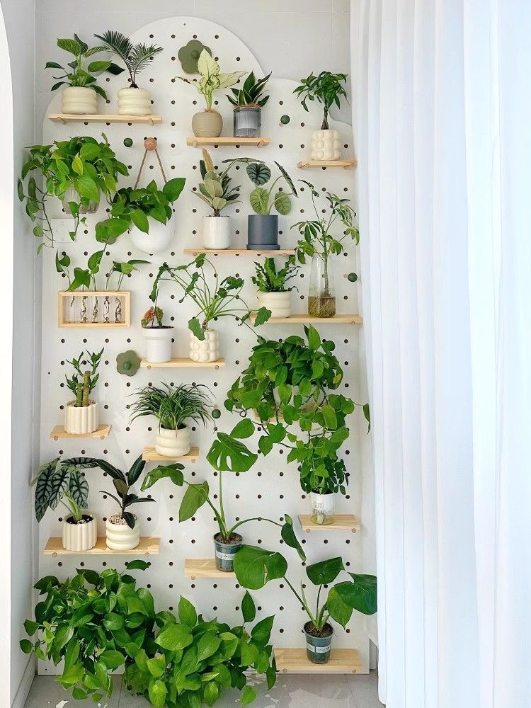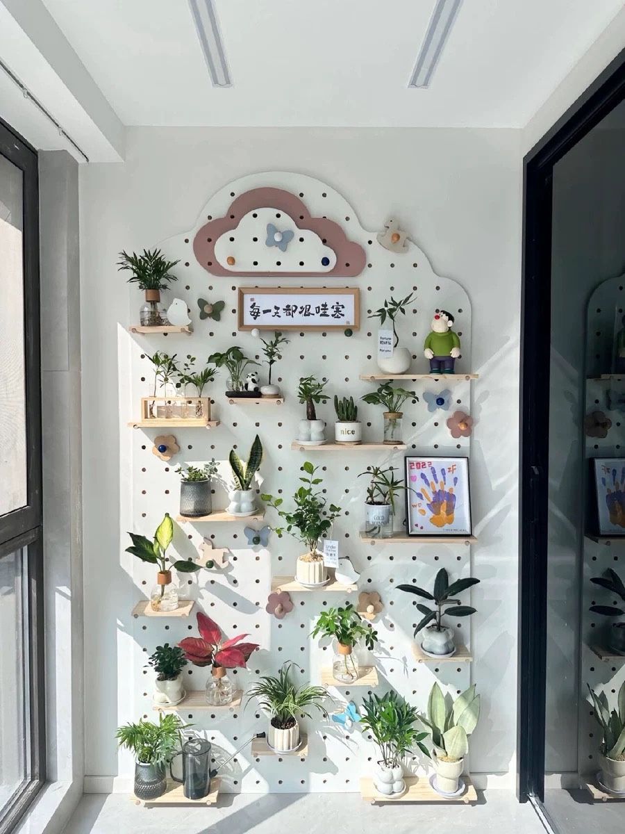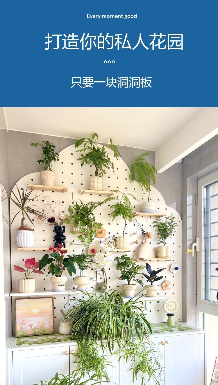 단단한 나무 구멍 보드 발코니 입구 선반 꽃 스탠드 실내 거실 창틀 벽 화분 녹색 식물 다육 식물 선반