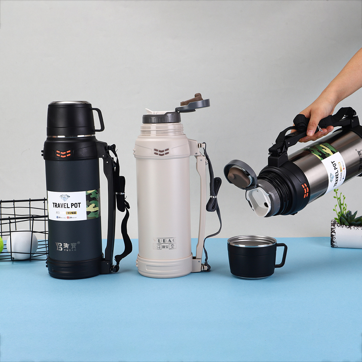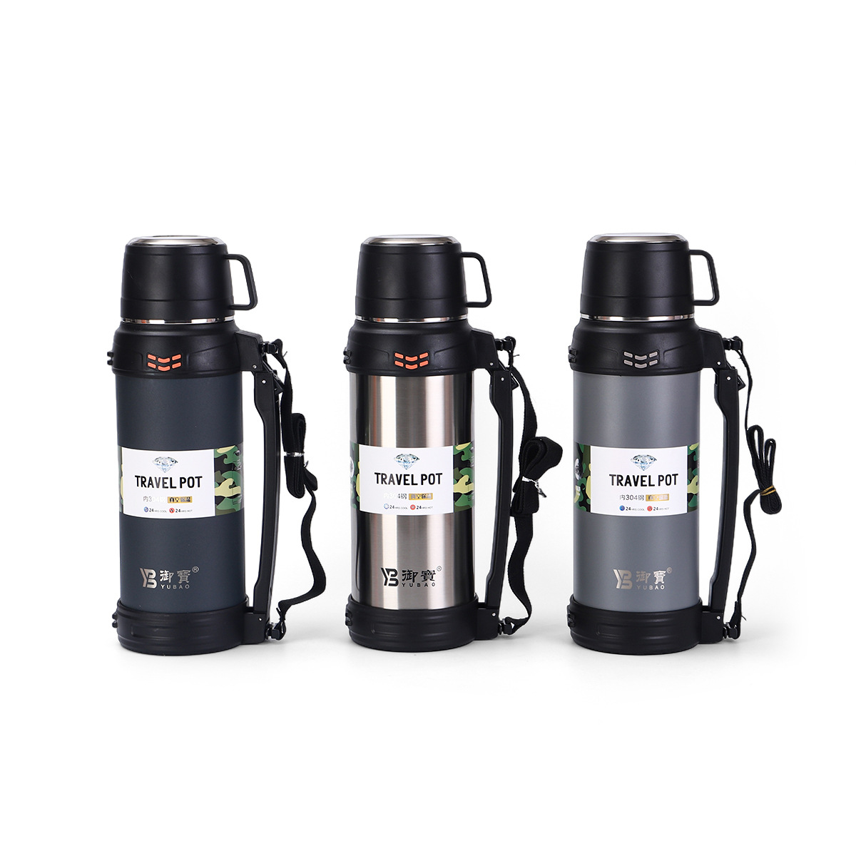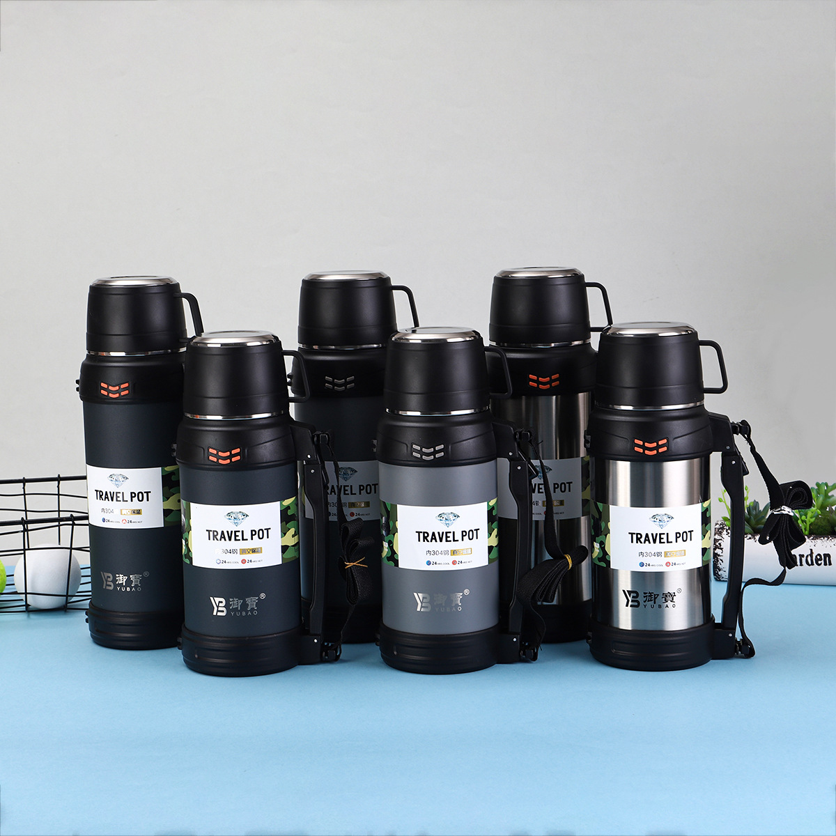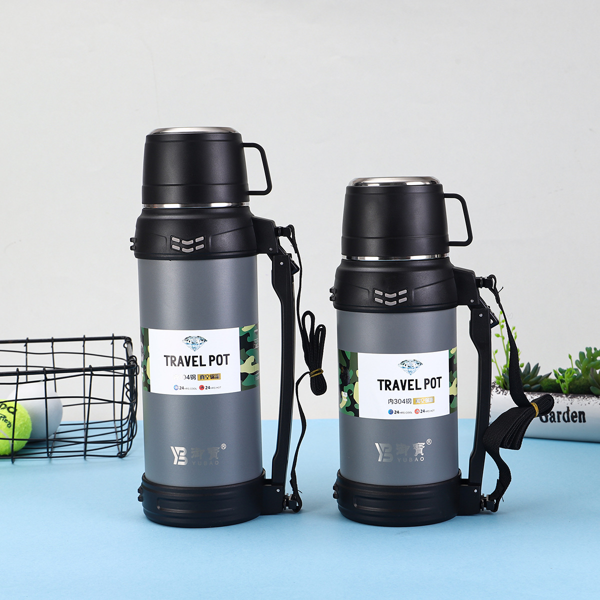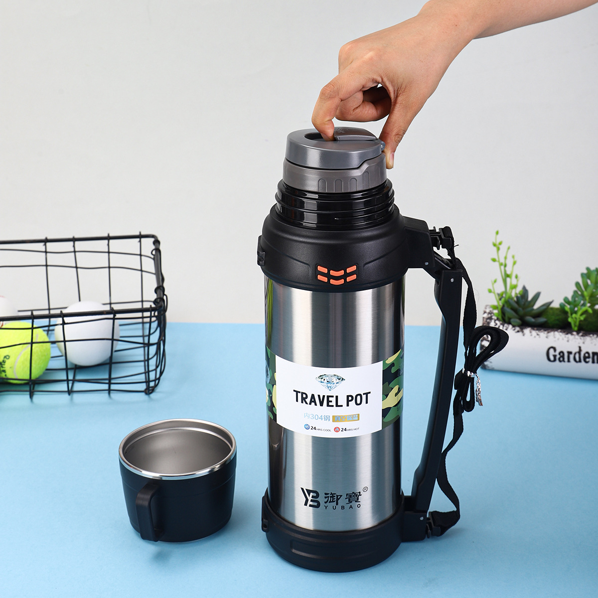 대용량 304 스테인레스 스틸 진공 단열 주전자 야외 스포츠 여행 주전자 손잡이가있는 휴대용 자동차 등산 주전자