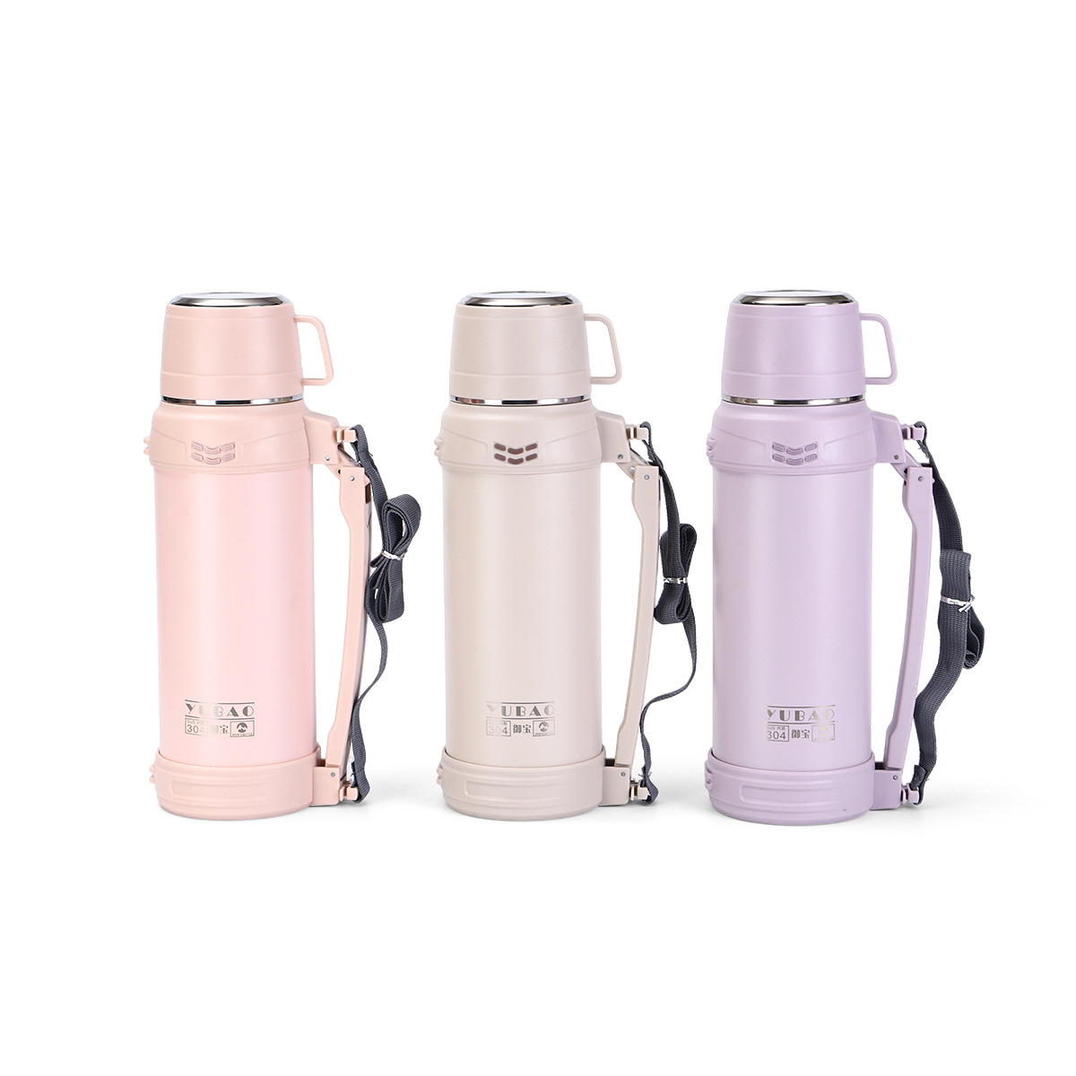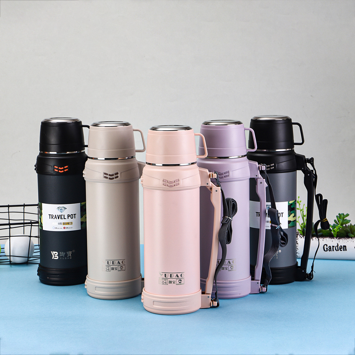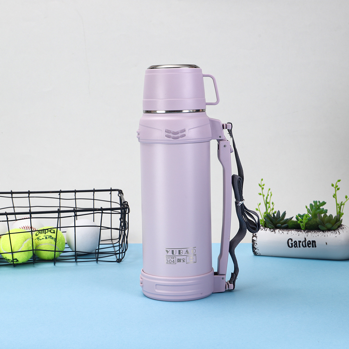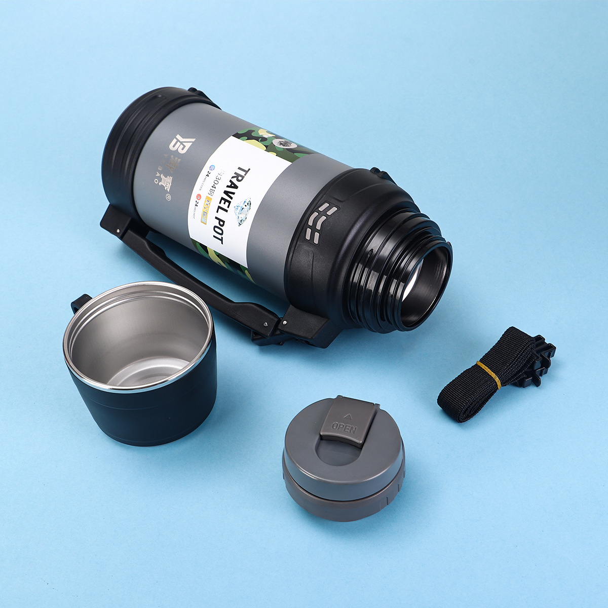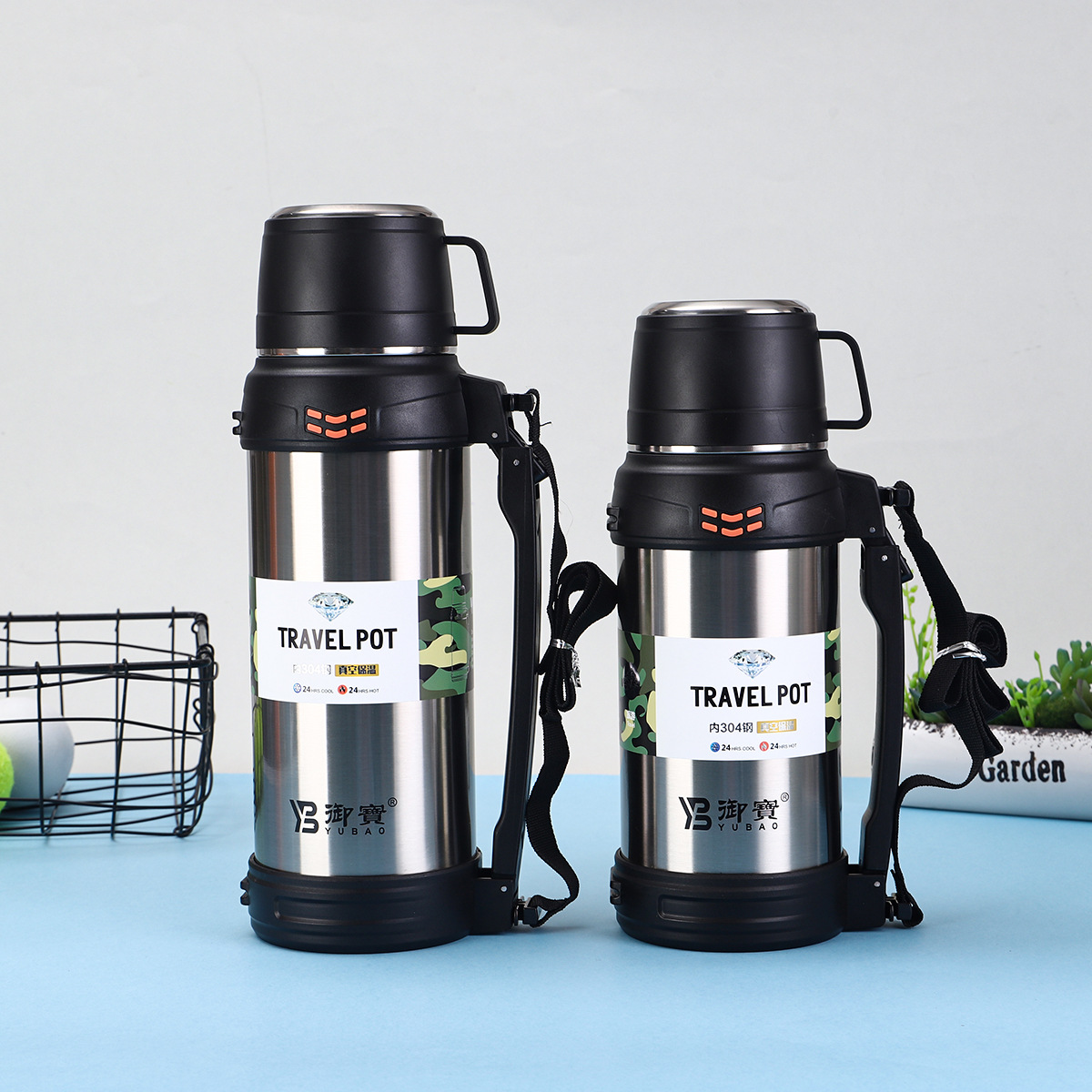 대용량 304 스테인레스 스틸 진공 단열 주전자 야외 스포츠 여행 주전자 손잡이가있는 휴대용 자동차 등산 주전자