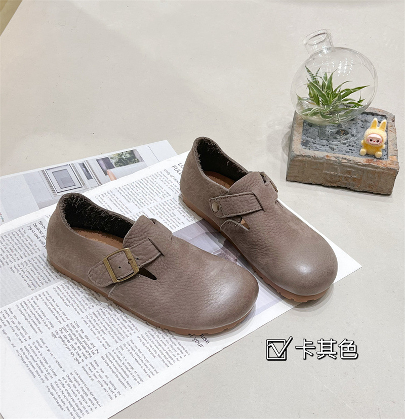 원저우 제조업체 1층 소가죽 Birkenstock 신발 모든 항목을 포함하는 부드러운 밑창 플랫 신발 여성용 검은색 캐주얼 신발 통기성 Birkenstock 신발스토어 가기