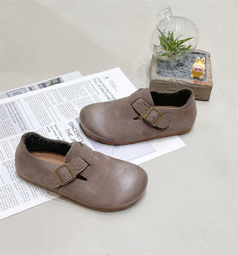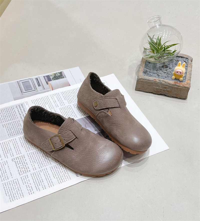 원저우 제조업체 1층 소가죽 Birkenstock 신발 모든 항목을 포함하는 부드러운 밑창 플랫 신발 여성용 검은색 캐주얼 신발 통기성 Birkenstock 신발