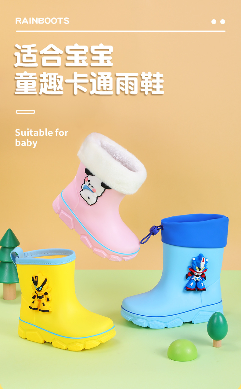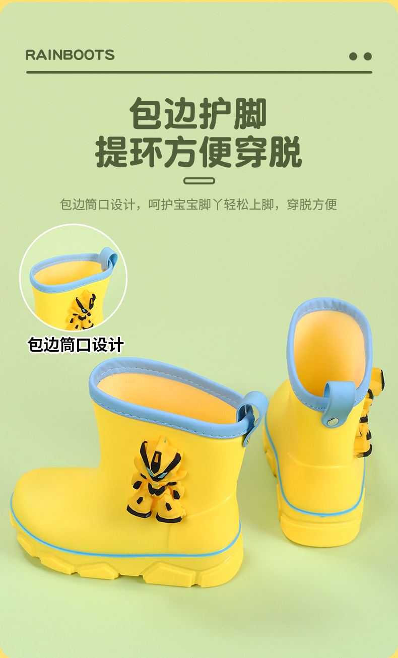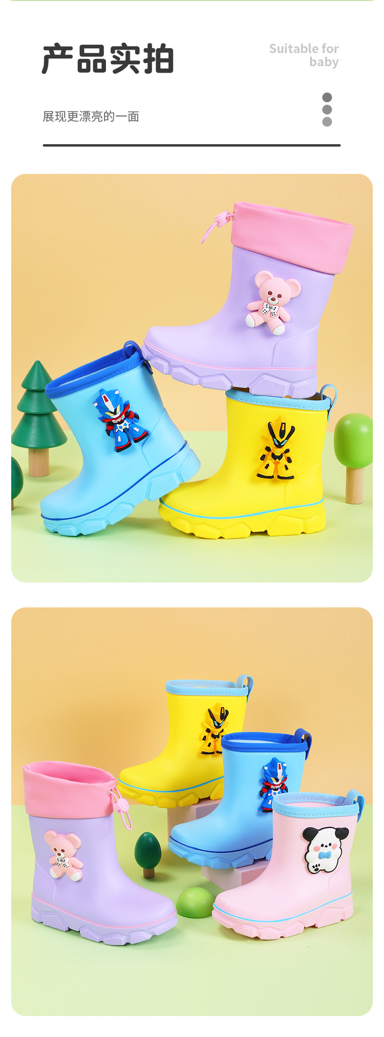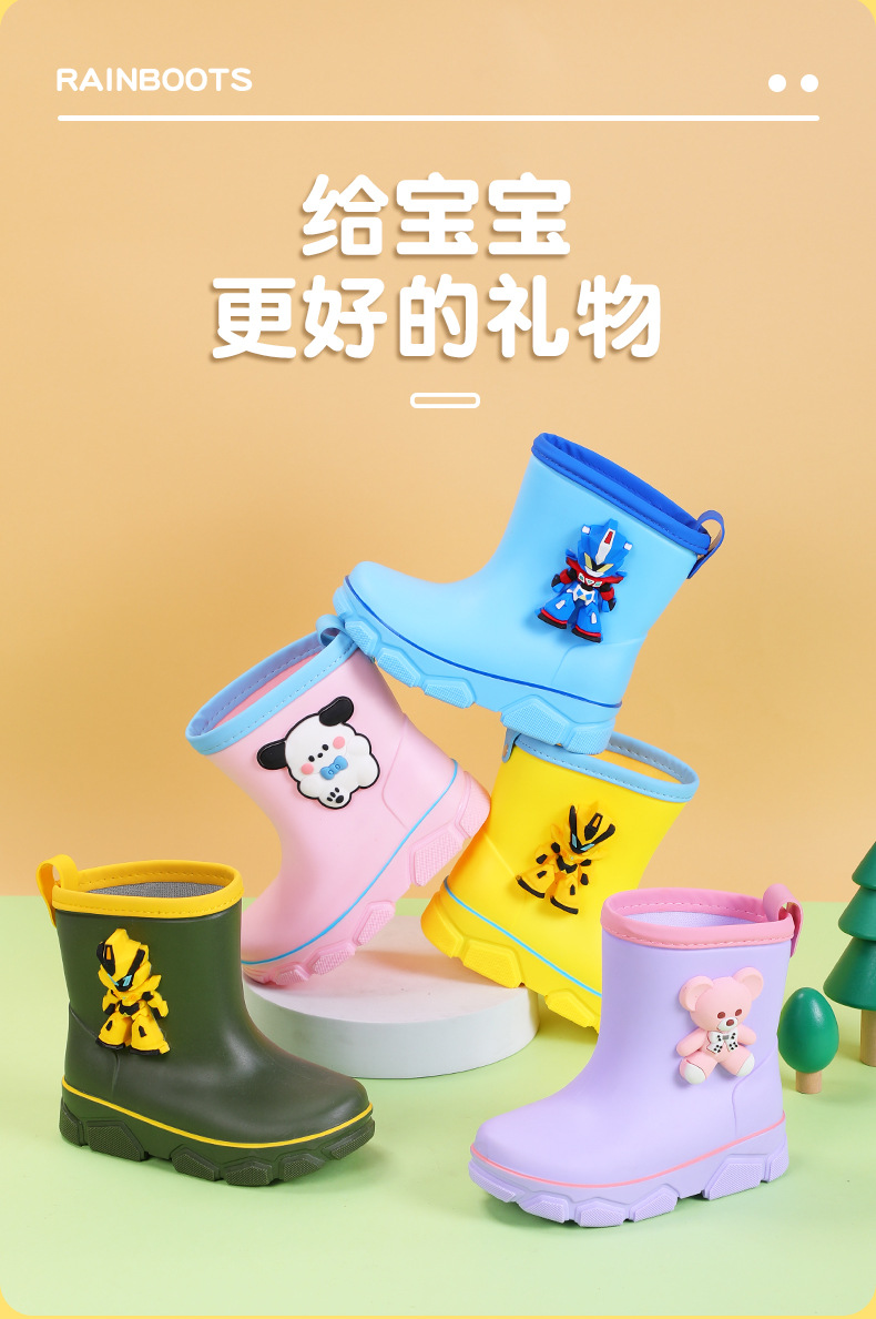 Yixinwei 소년 소녀용 새 장화, 귀여운 스타일, 어린이 장화, 방수 및 미끄럼 방지 장화, 비 방지 중간 튜브 고무 신발스토어 가기
