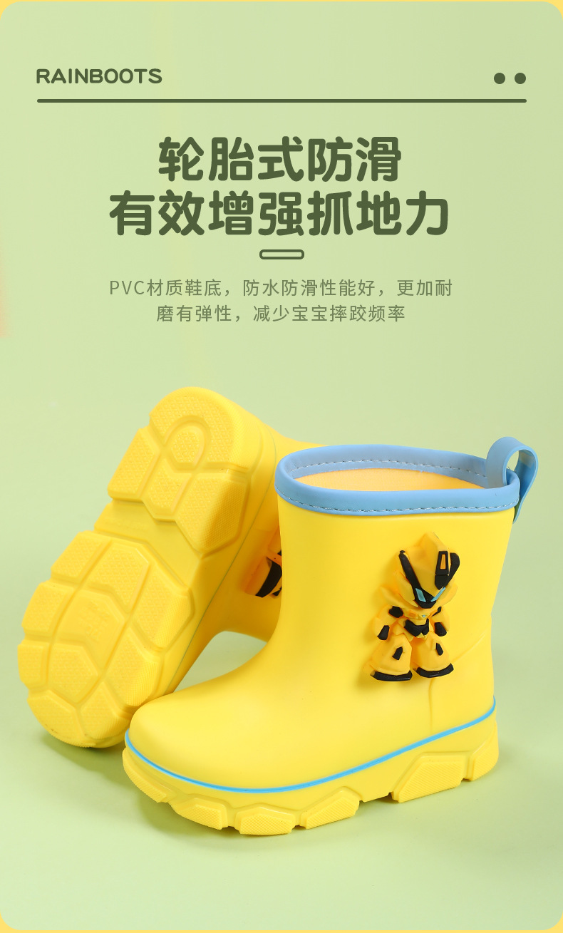 Yixinwei 소년 소녀용 새 장화, 귀여운 스타일, 어린이 장화, 방수 및 미끄럼 방지 장화, 비 방지 중간 튜브 고무 신발