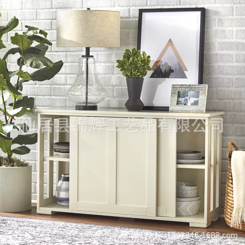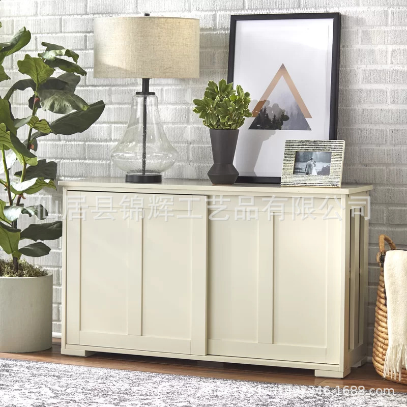 사진으로 맞춤형 라이트 럭셔리 화이트 사이드보드, 모던하고 심플한 거실 수납장, 슬라이딩 도어 식기 및 접시 수납장