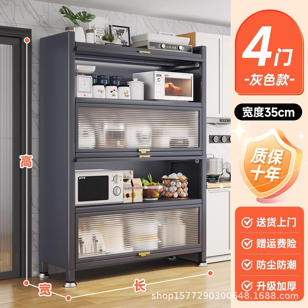 가정용 강철 주방 보관함 도어가있는 다층 보관 캐비닛 다기능 캐비닛 찬장 전자 레인지 보관 캐비닛스토어 가기