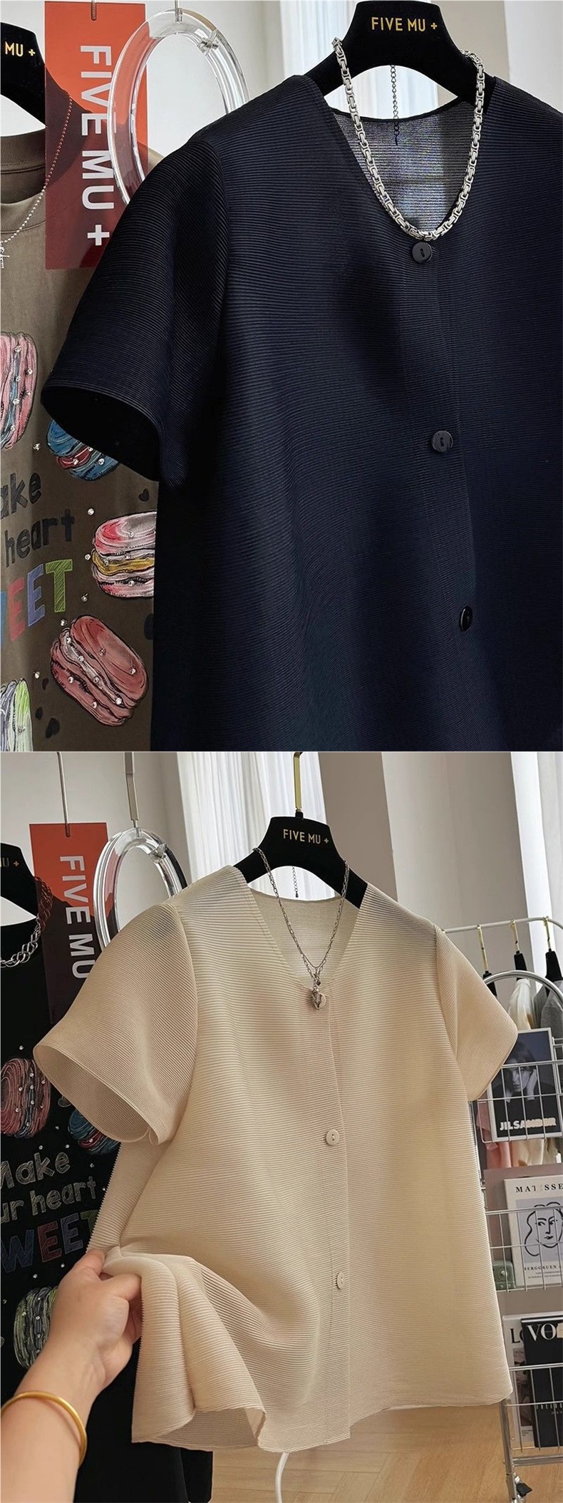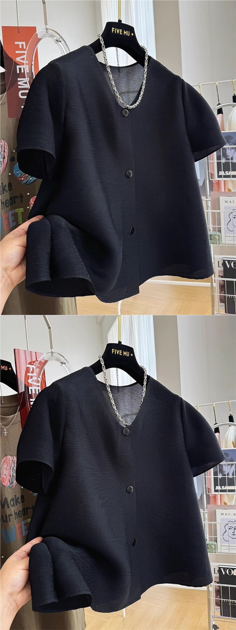 Fat MM 특대 사이즈 150kg 여성용 주름 반팔 셔츠 여름 느슨한 기질 쉬폰 셔츠 서양식 탑 2스토어 가기