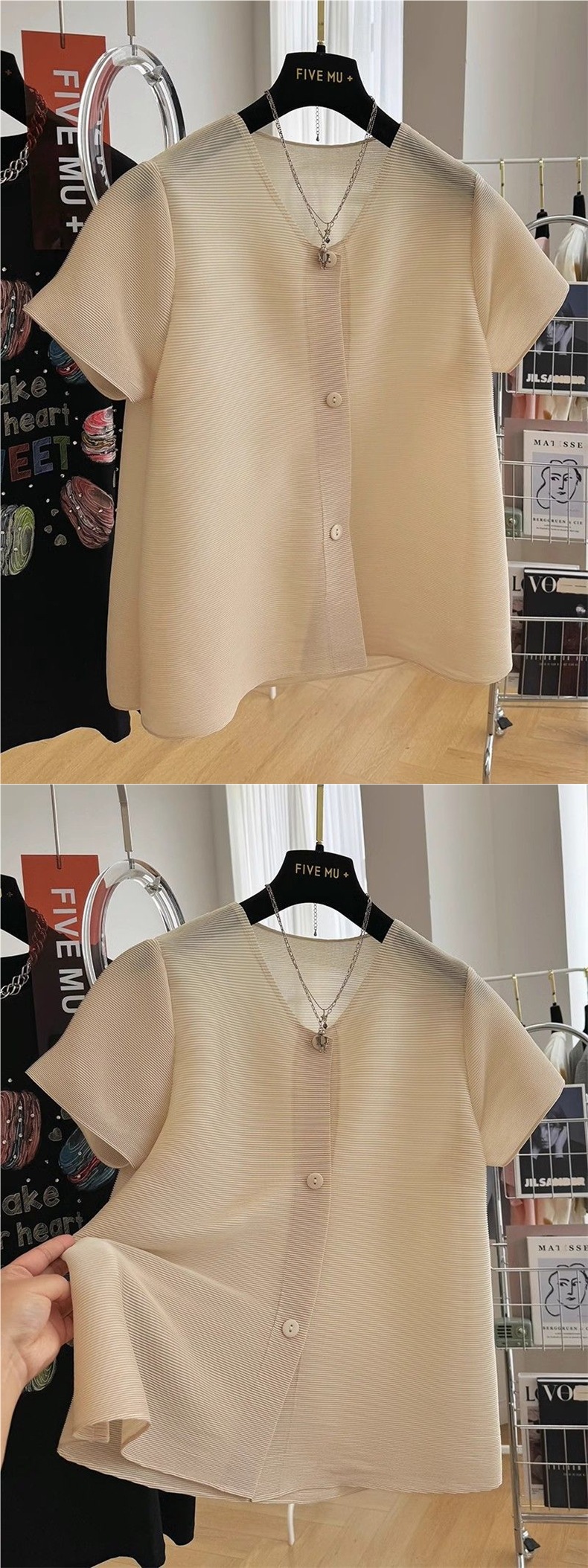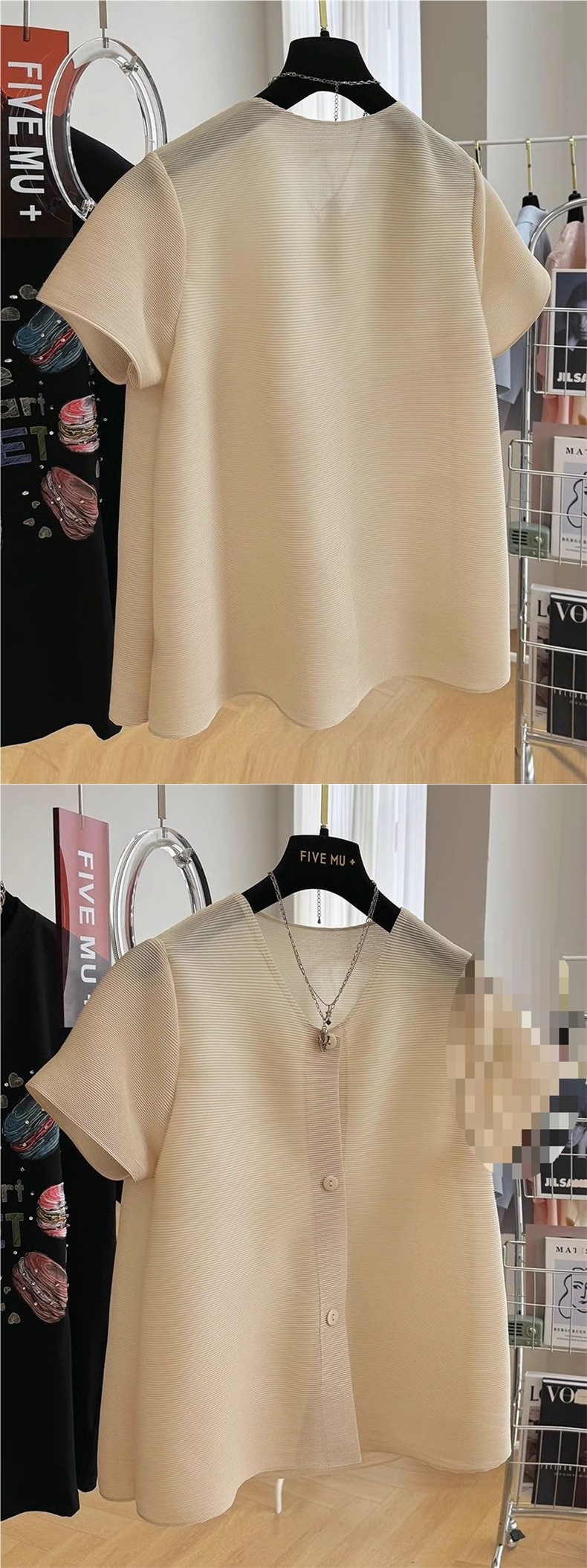 Fat MM 특대 사이즈 150kg 여성용 주름 반팔 셔츠 여름 느슨한 기질 쉬폰 셔츠 서양식 탑 2