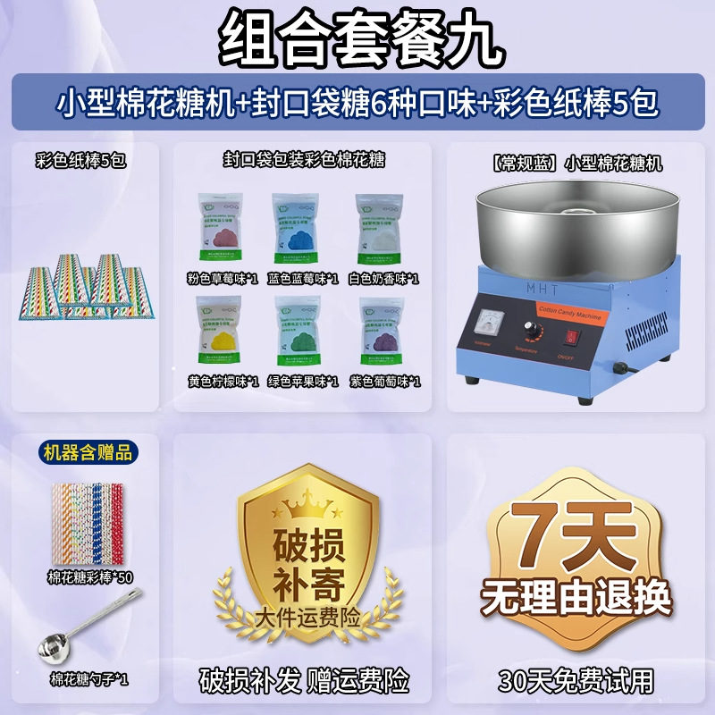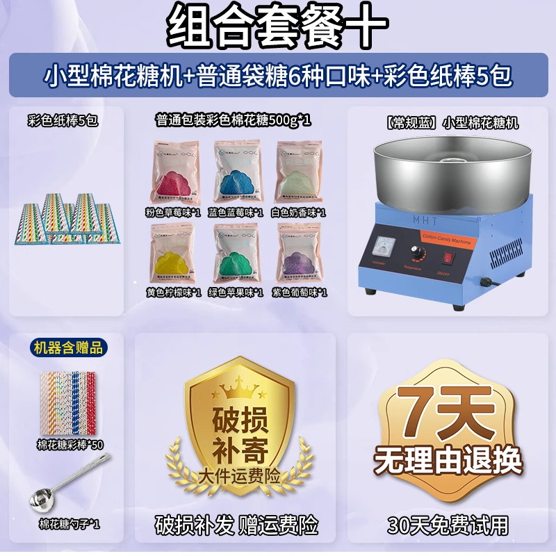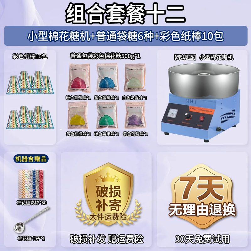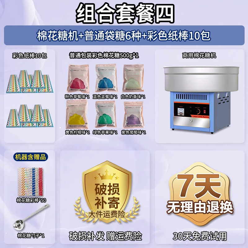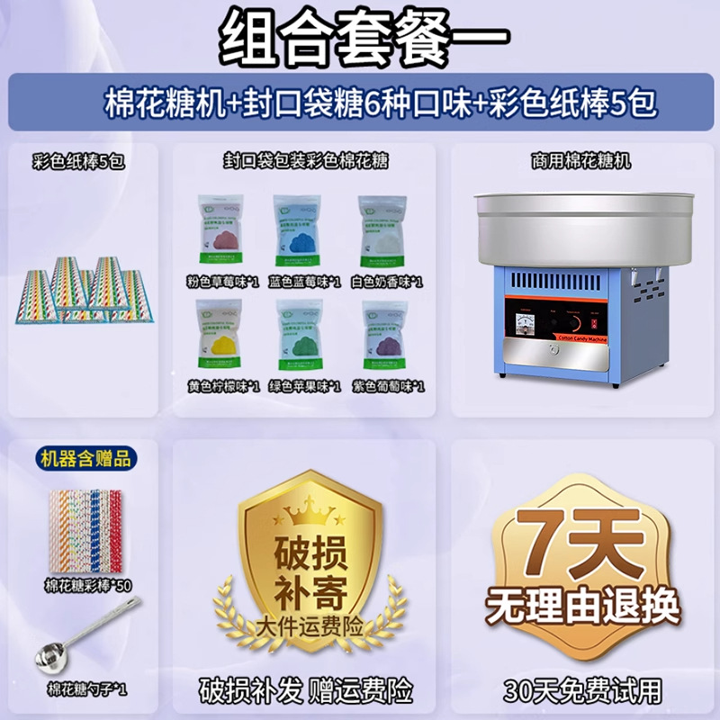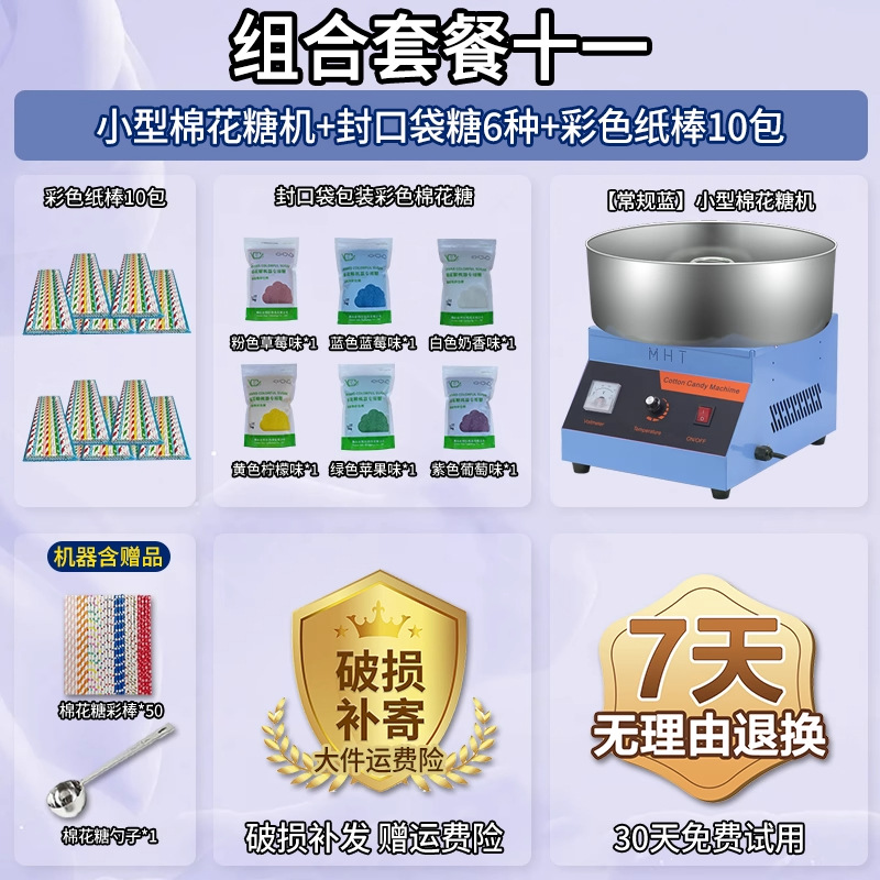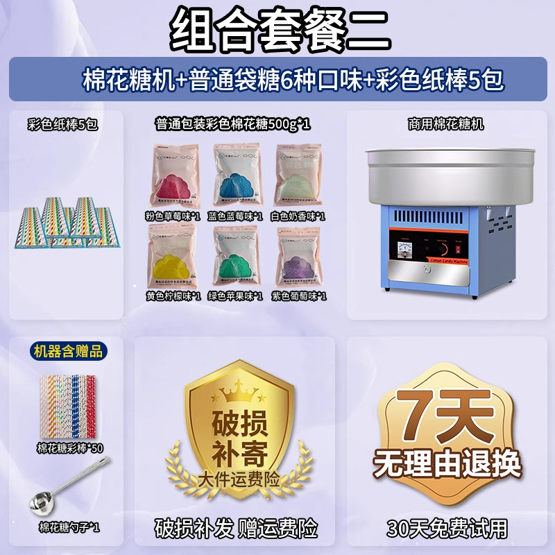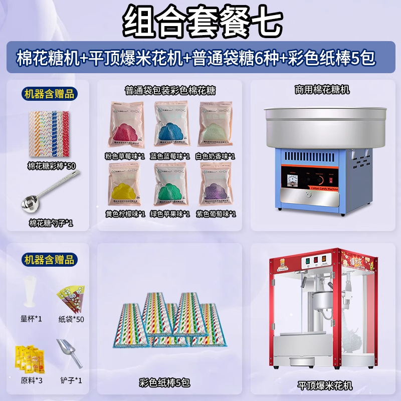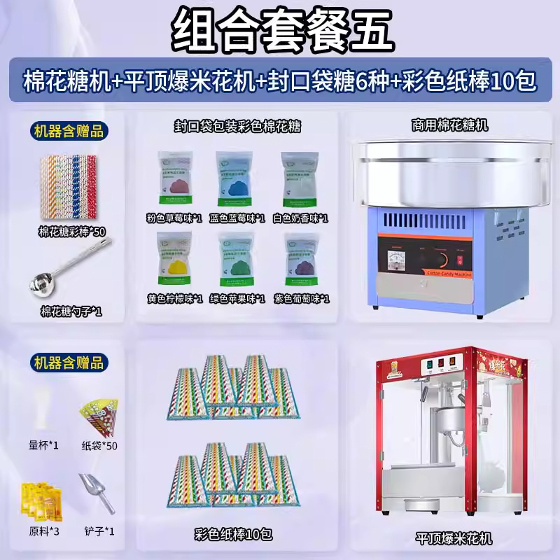 • 글레이즈드 블루 [인기 조합] 솜사탕 기계 + 06A 플랫탑 팝콘 기계 + 밀봉 봉지 포장 설탕 6종 1팩당 1000g + 색종이 스틱 10팩 50개