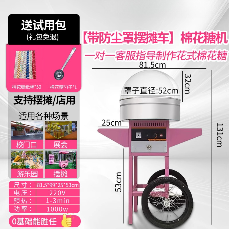 • 업그레이드 - 상업용 마시멜로 기계 [이동식 카트 + 투명 더스트커버]