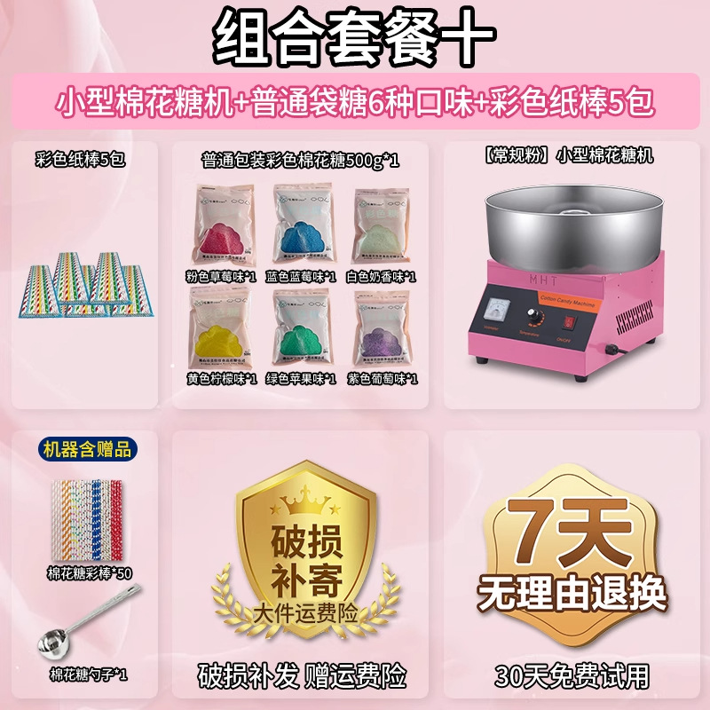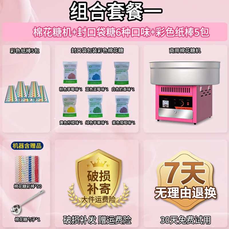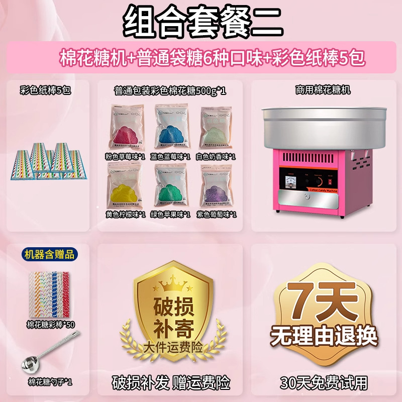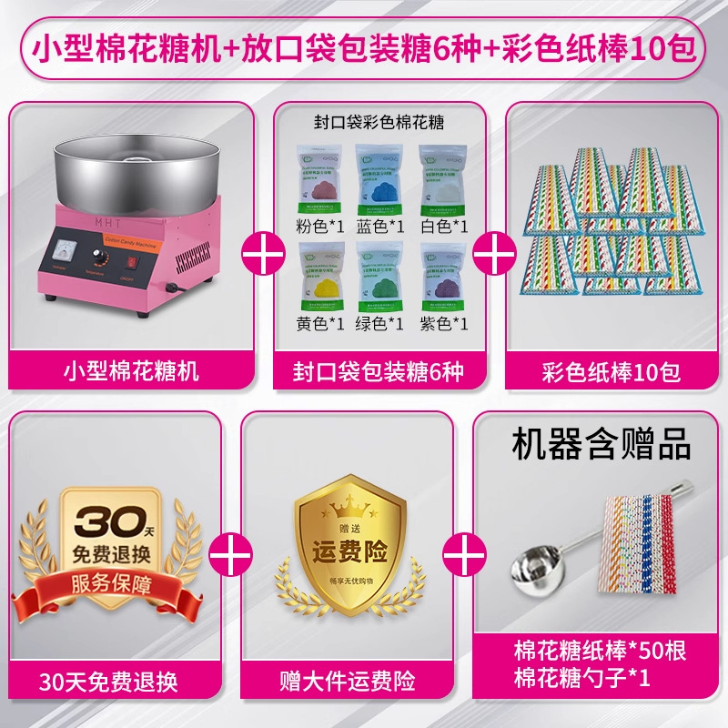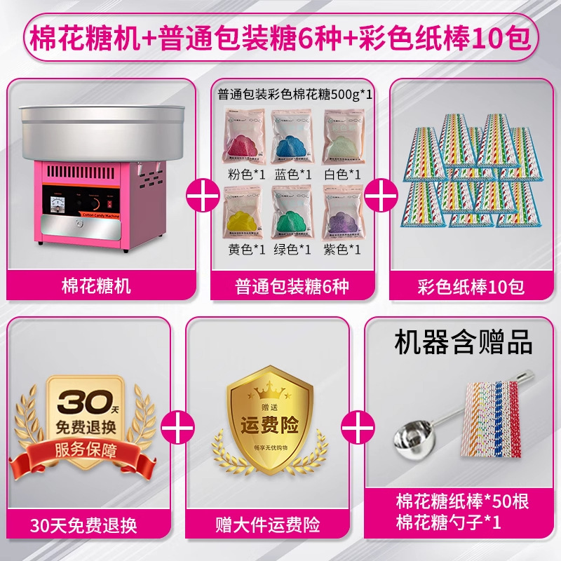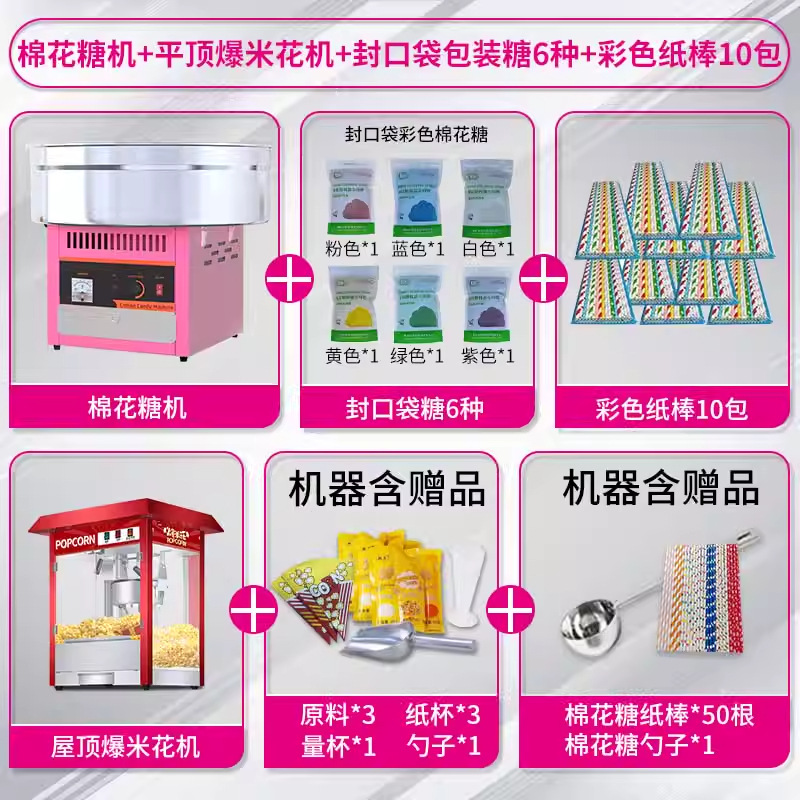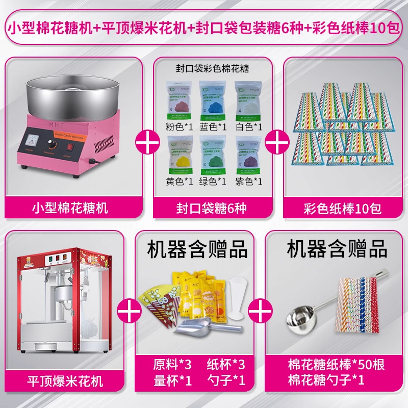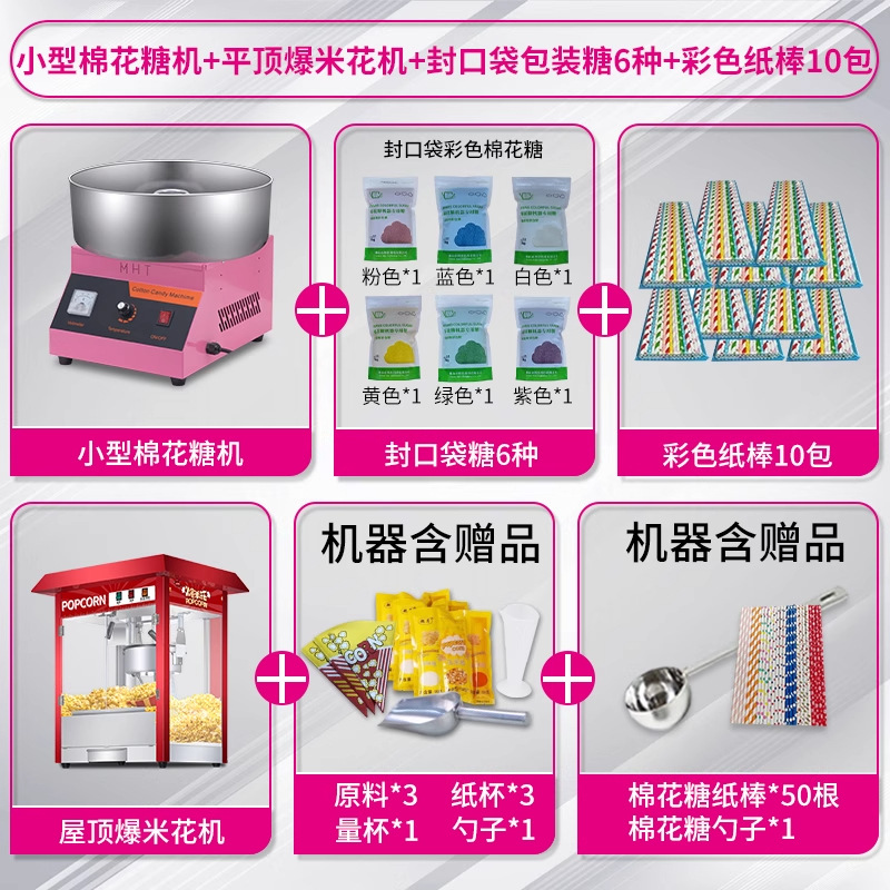 • [특가] 솜사탕 기계 + 06B 지붕 팝콘 기계 + 일반 봉지 포장 설탕 6종, 각 500g + 색종이 스틱 250개 5팩