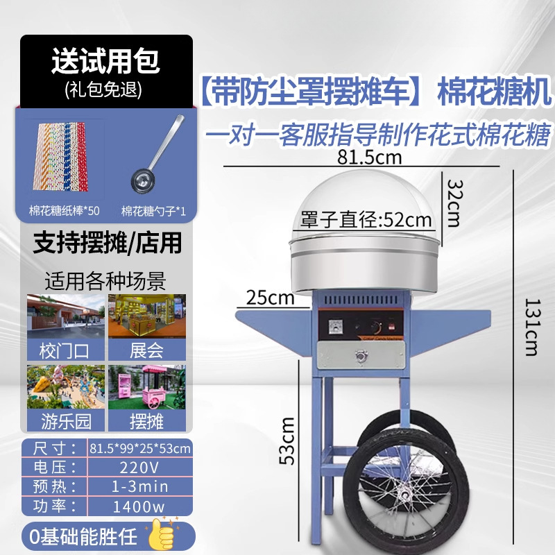 • 글레이즈드 블루 업그레이드 상업용 마시멜로 기계 [이동식 스톨 트럭 + 투명 더스트 커버]