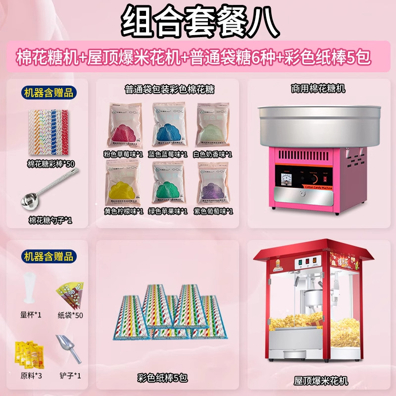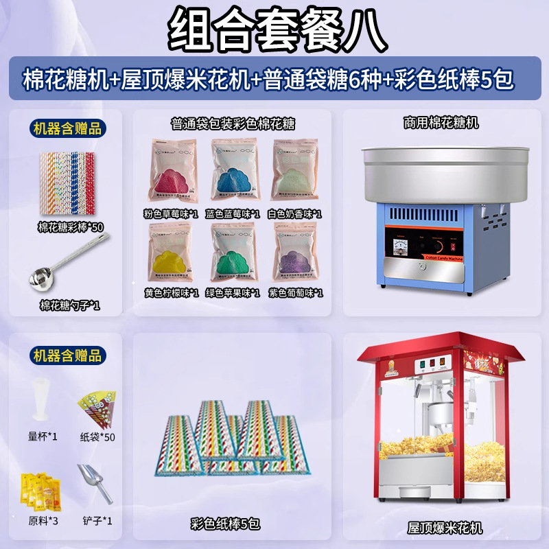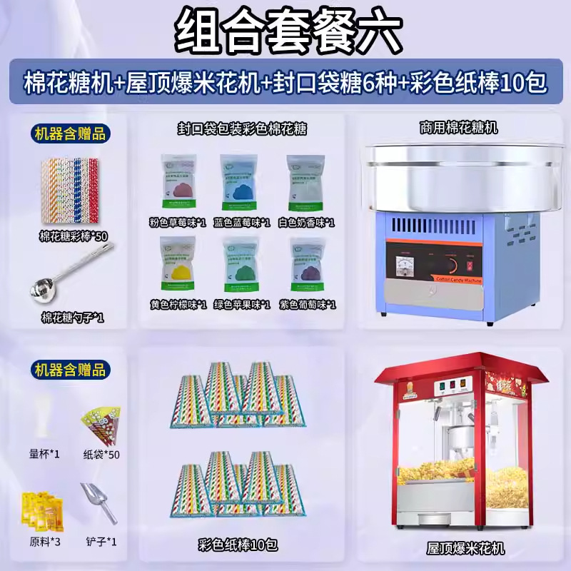 • [특가 추천 패키지] 마시멜로 기계 + 06B 지붕 팝콘 기계 + 밀봉 봉지 포장 설탕 6종 1팩당 1000g + 색종이 스틱 10팩 500개