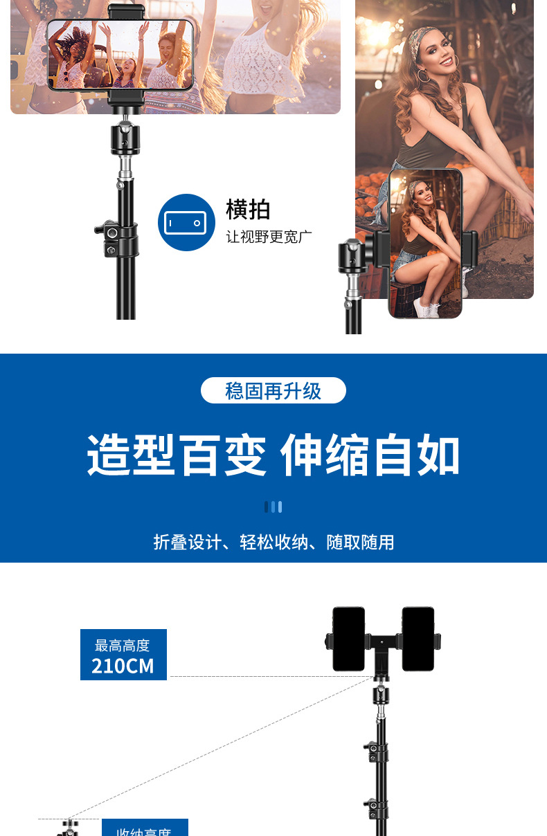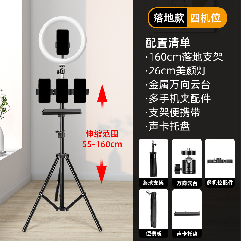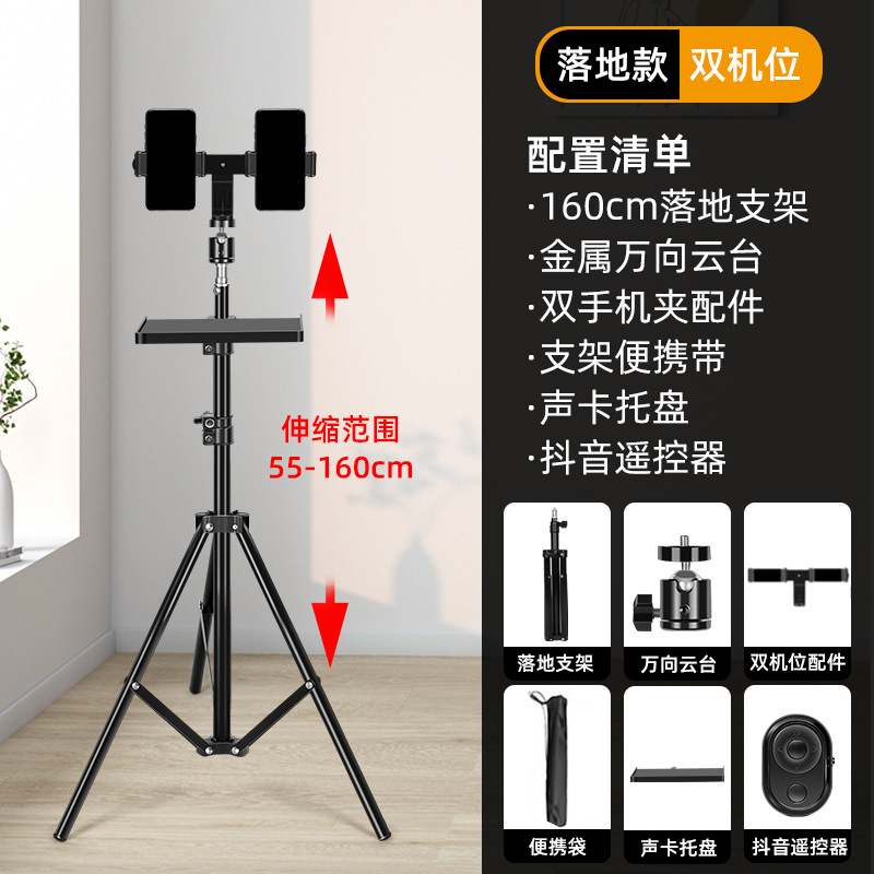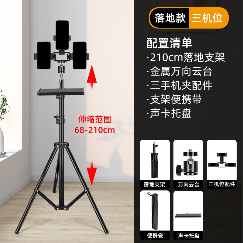 멀티 카메라 휴대폰 라이브 방송 스탠드, 바닥형 인터넷 연예인 전용 사운드 카드 트레이 장비 삼각대 앵커 야외스토어 가기