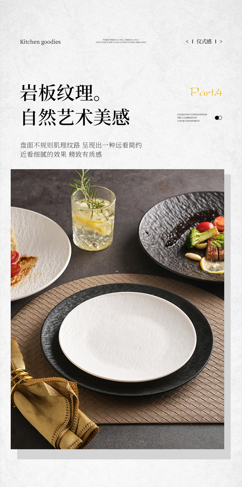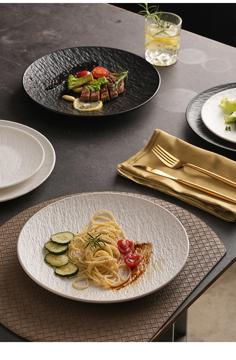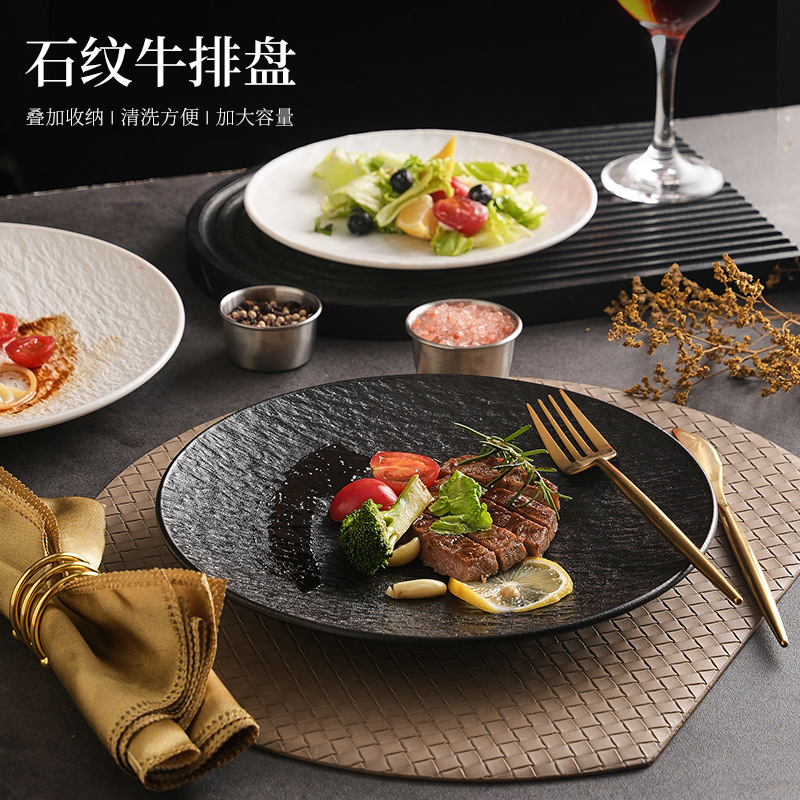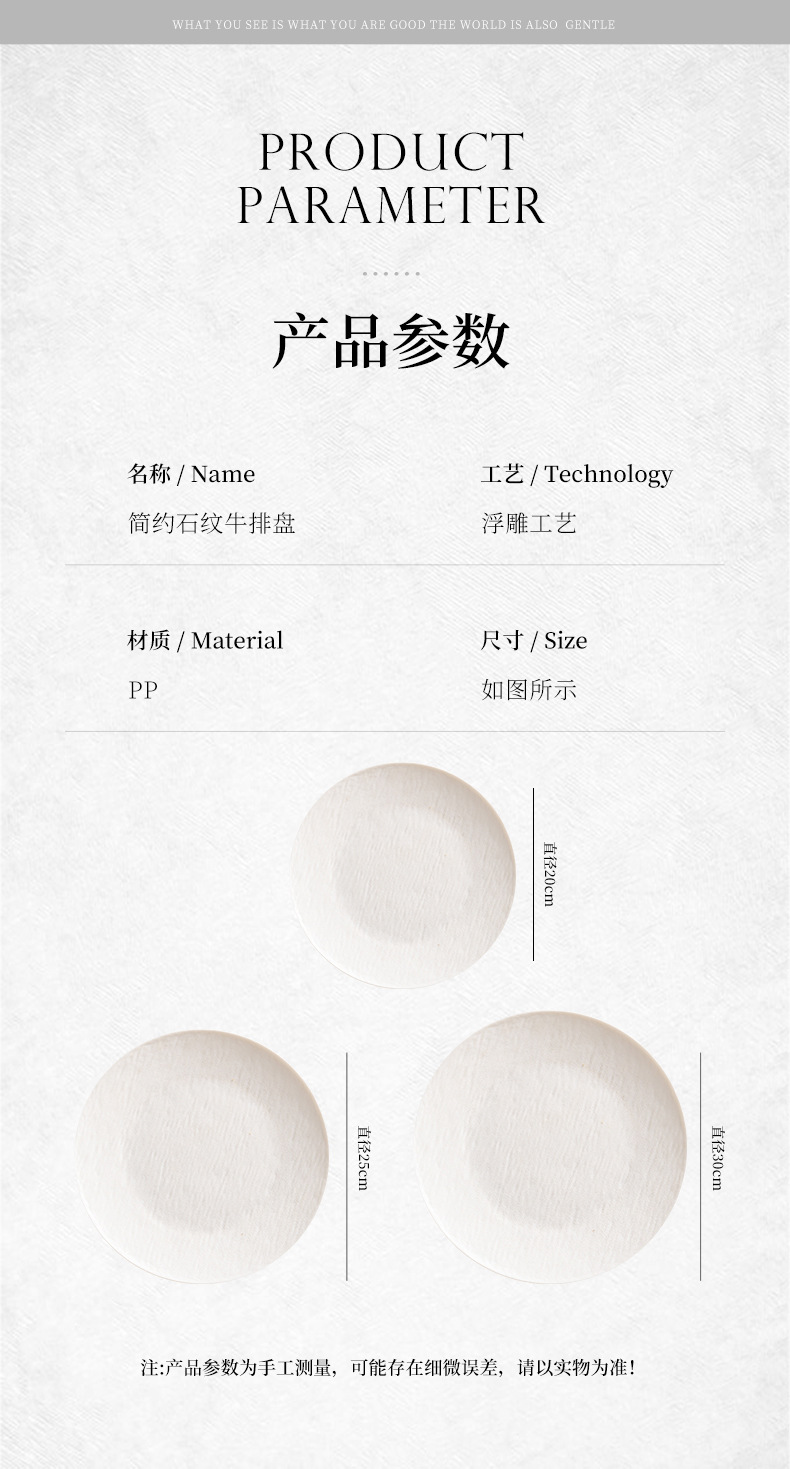 PP 플라스틱 스톤 패턴 플레이트 라이트 럭셔리 블랙 화이트 스테이크 플레이트 서양 음식 접시 파스타 플레이트 가정용 모조 스톤 디너 플레이트