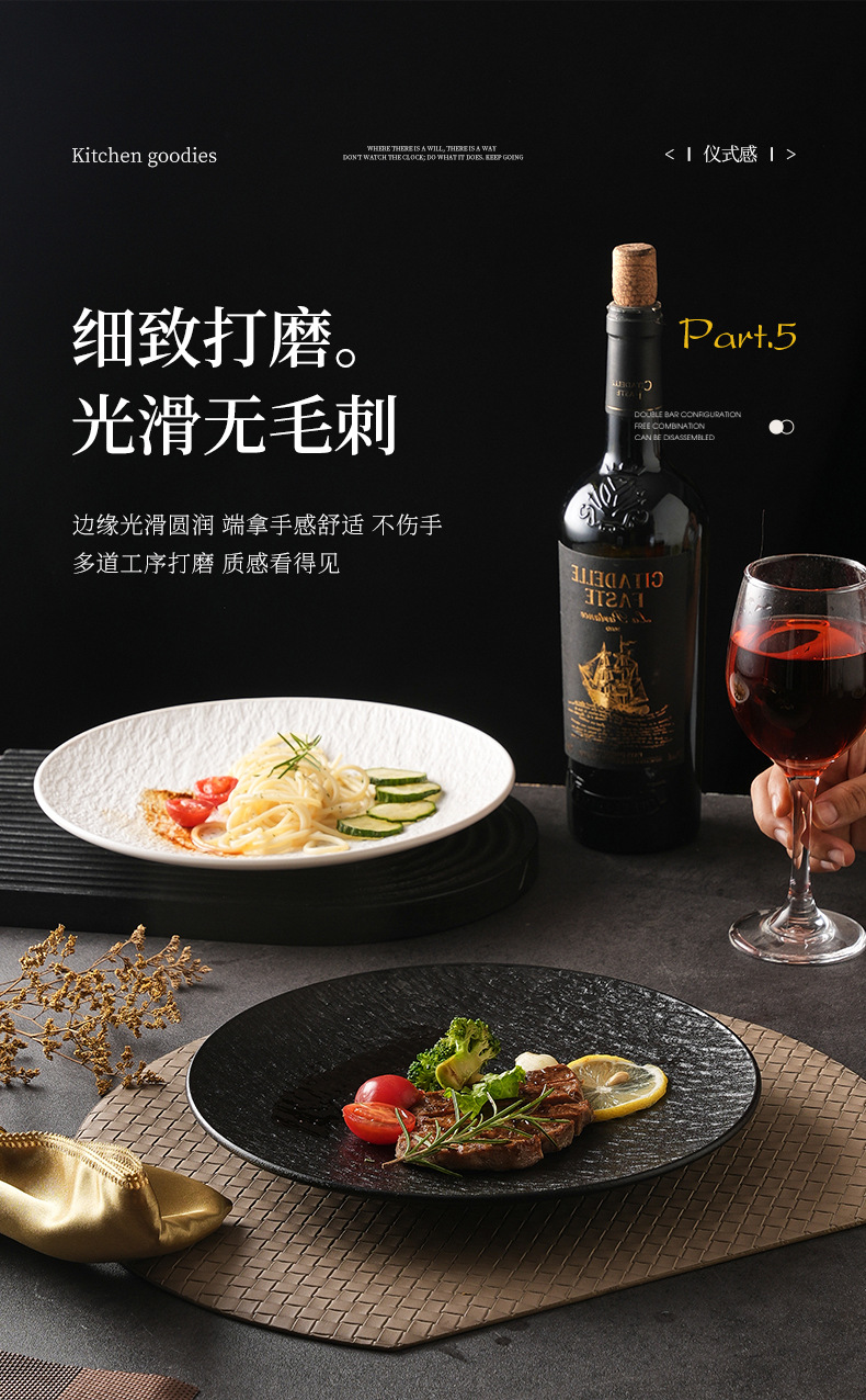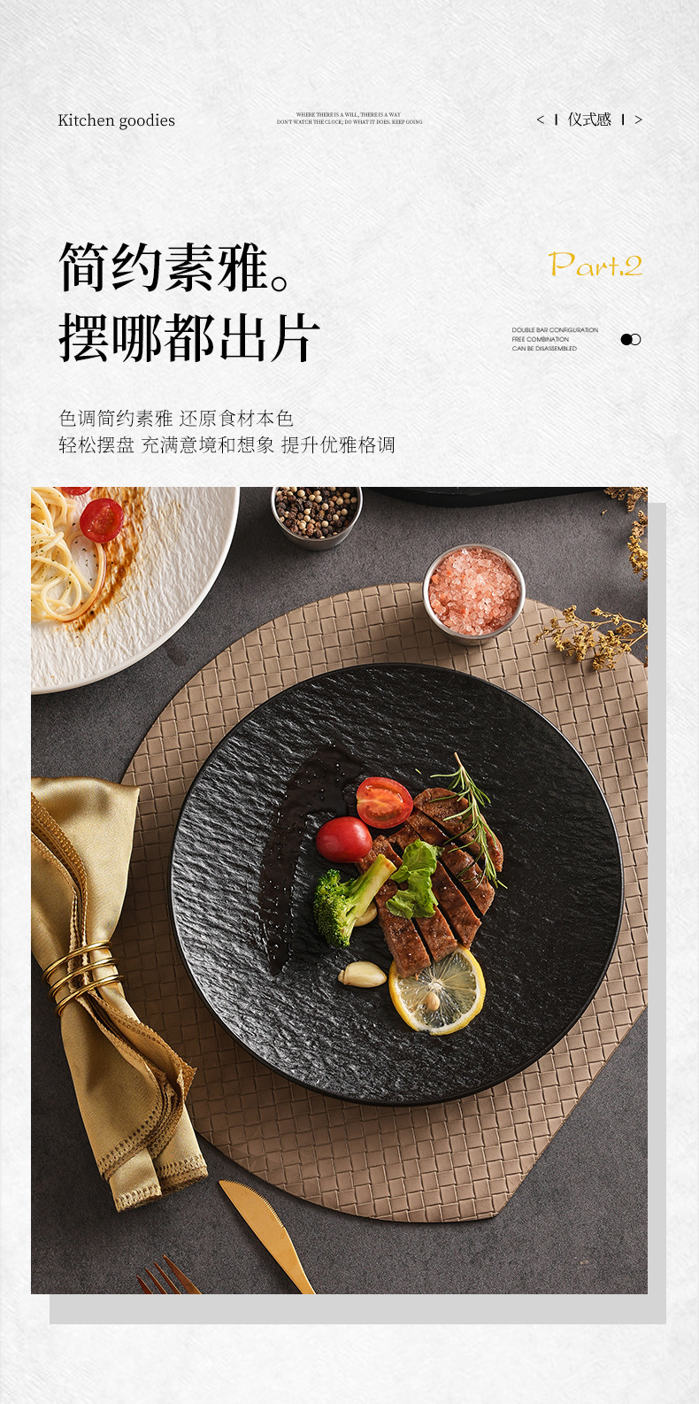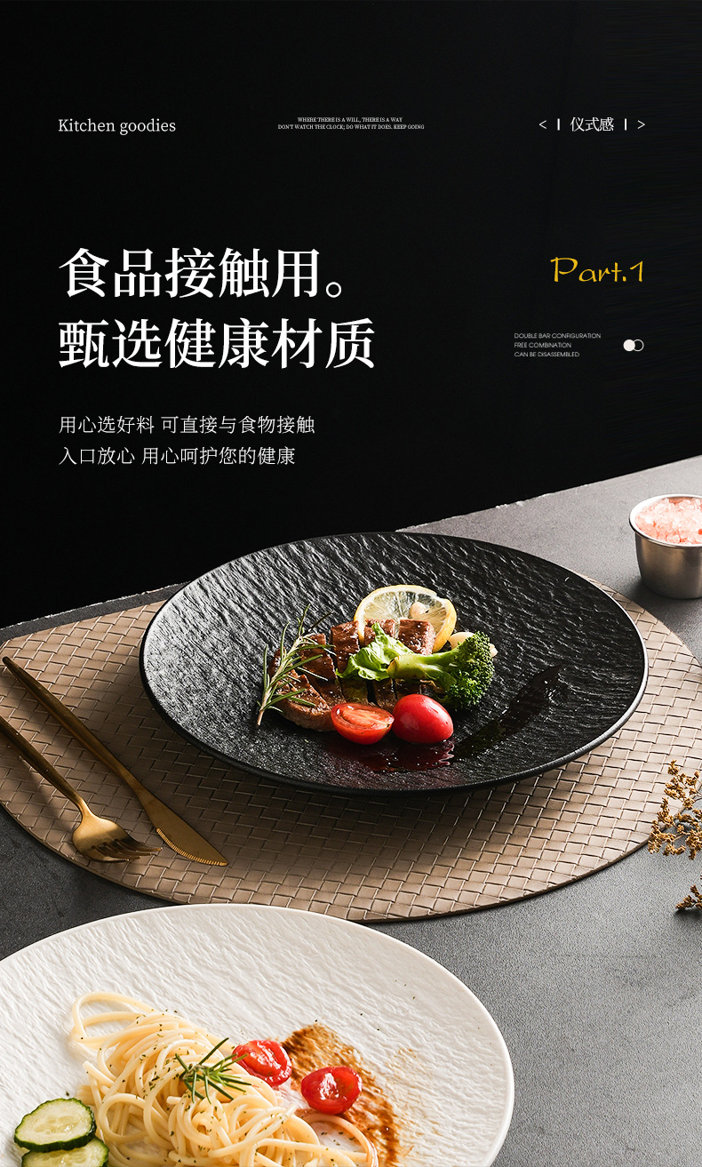 PP 플라스틱 스톤 패턴 플레이트 라이트 럭셔리 블랙 화이트 스테이크 플레이트 서양 음식 접시 파스타 플레이트 가정용 모조 스톤 디너 플레이트