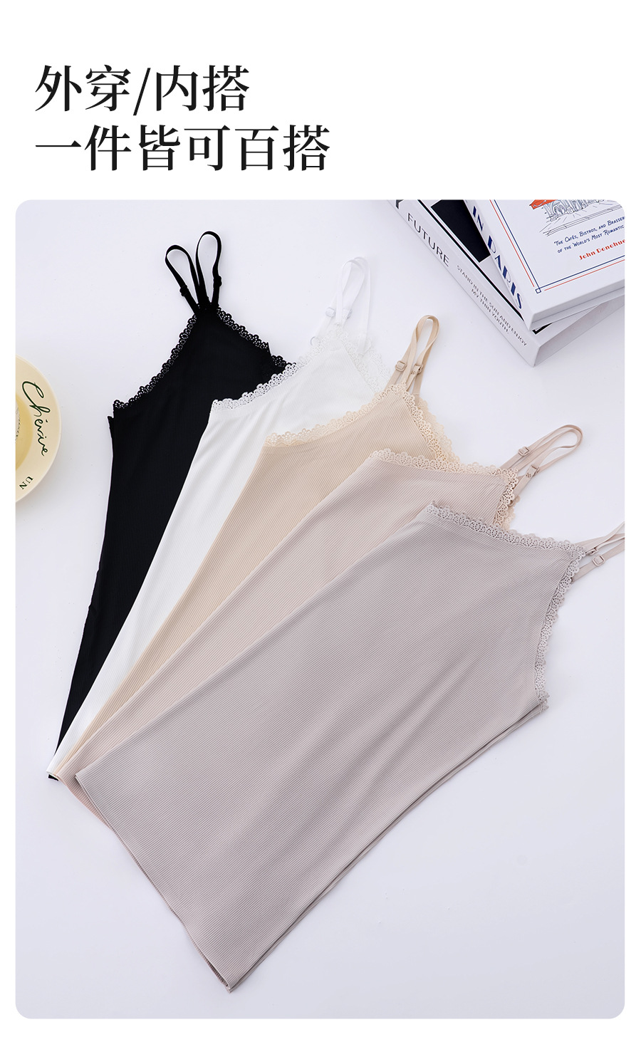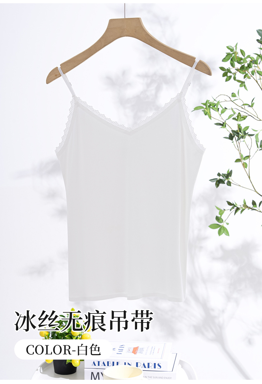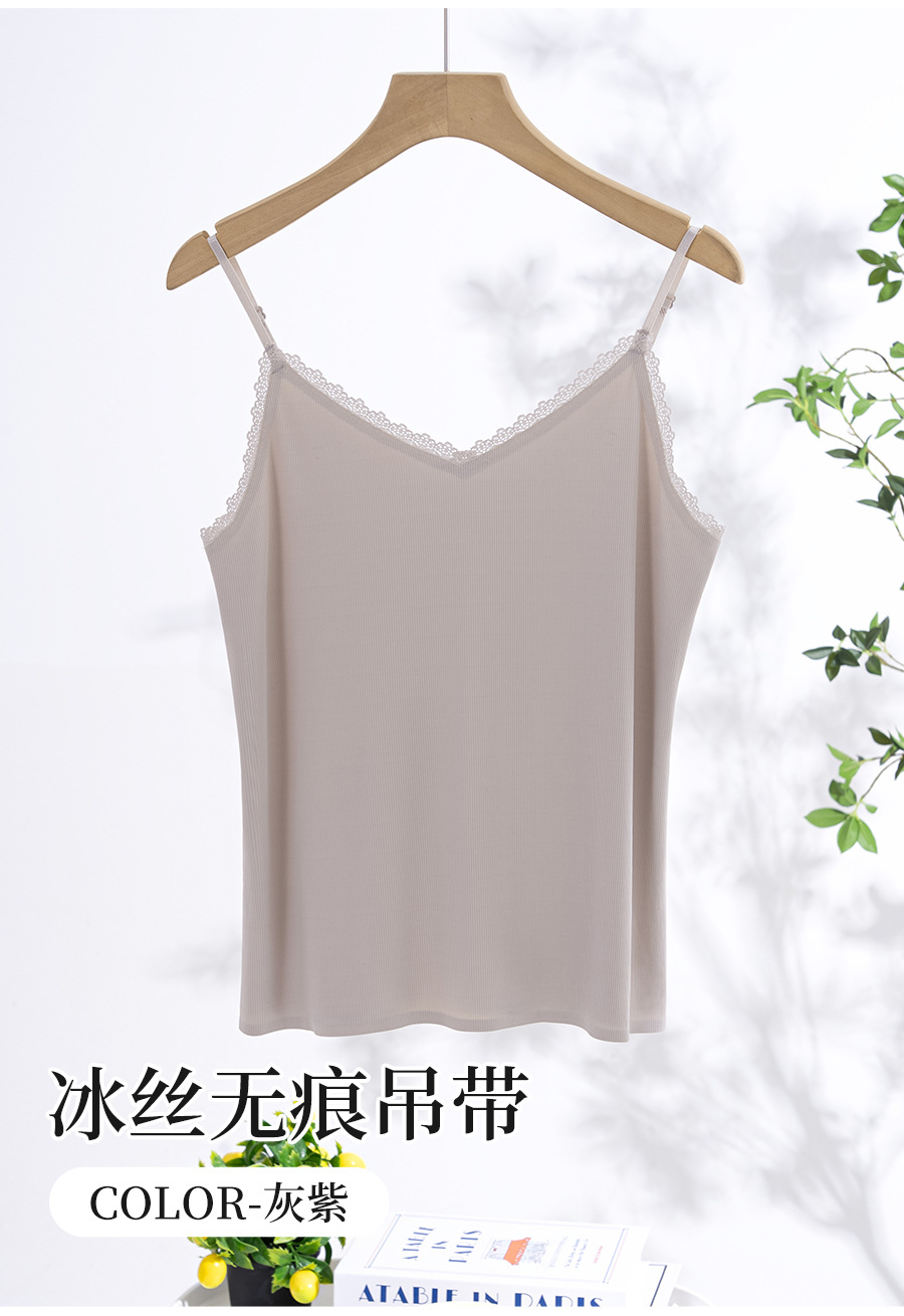 스레드 아이스 실크 캐미솔, 심리스 시원한 원단, 얇은 이너 레이어, 홈 뷰티 백 레이스 브이넥 캐미솔스토어 가기