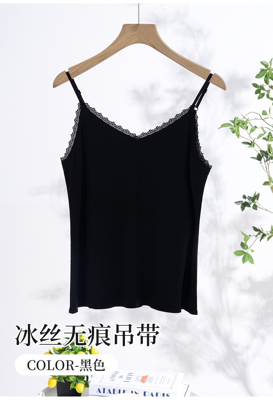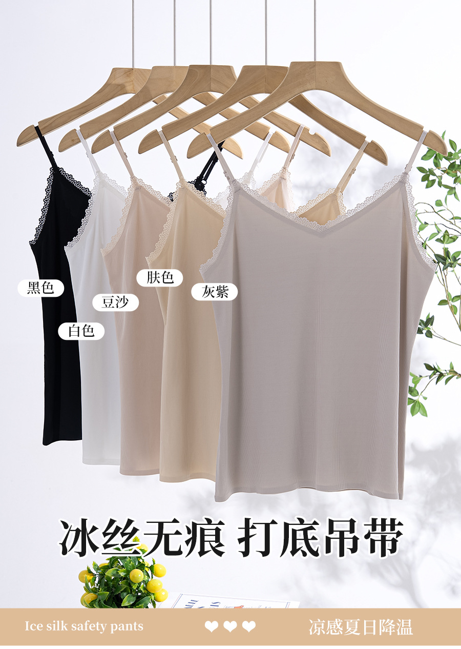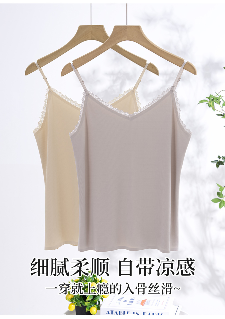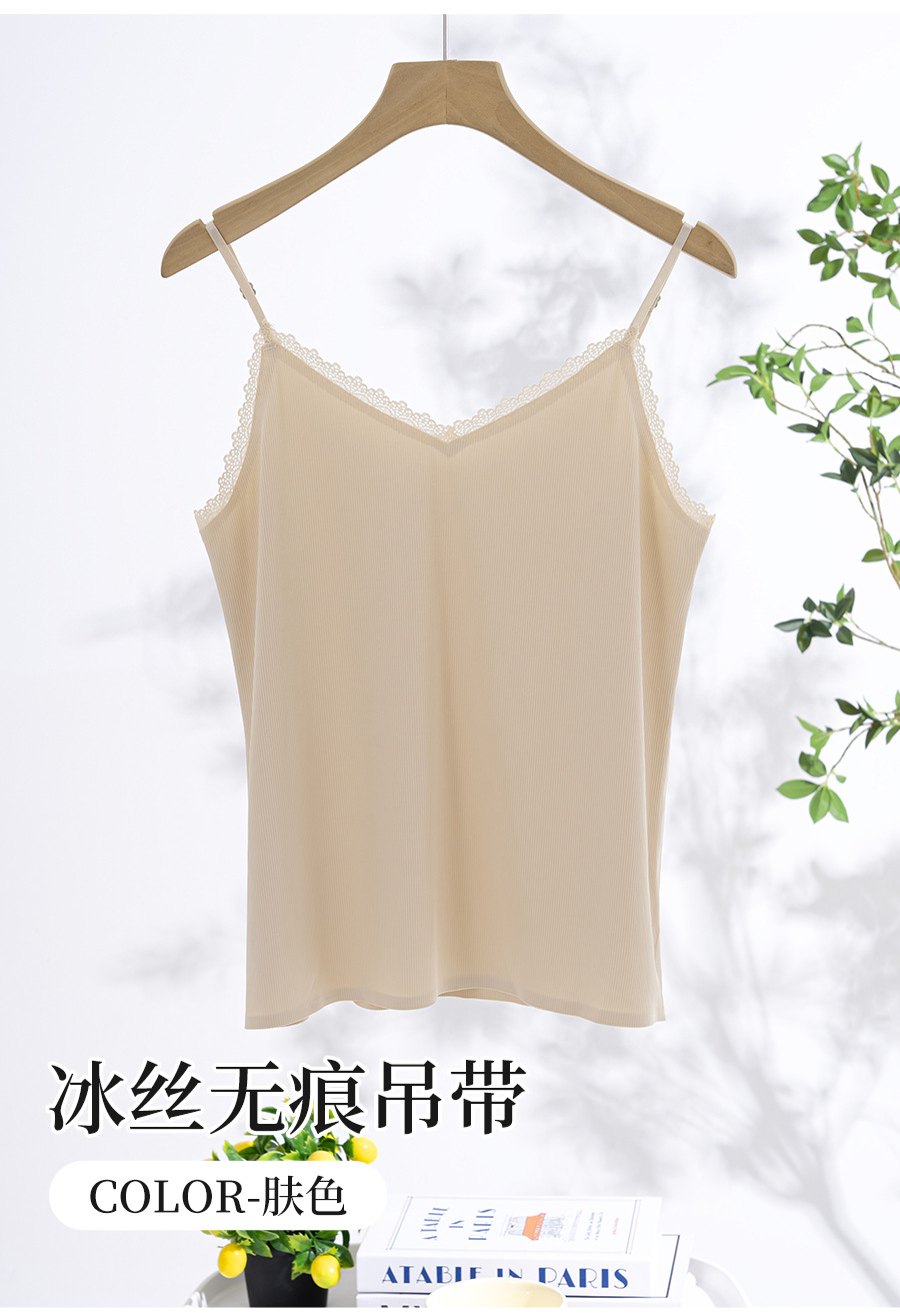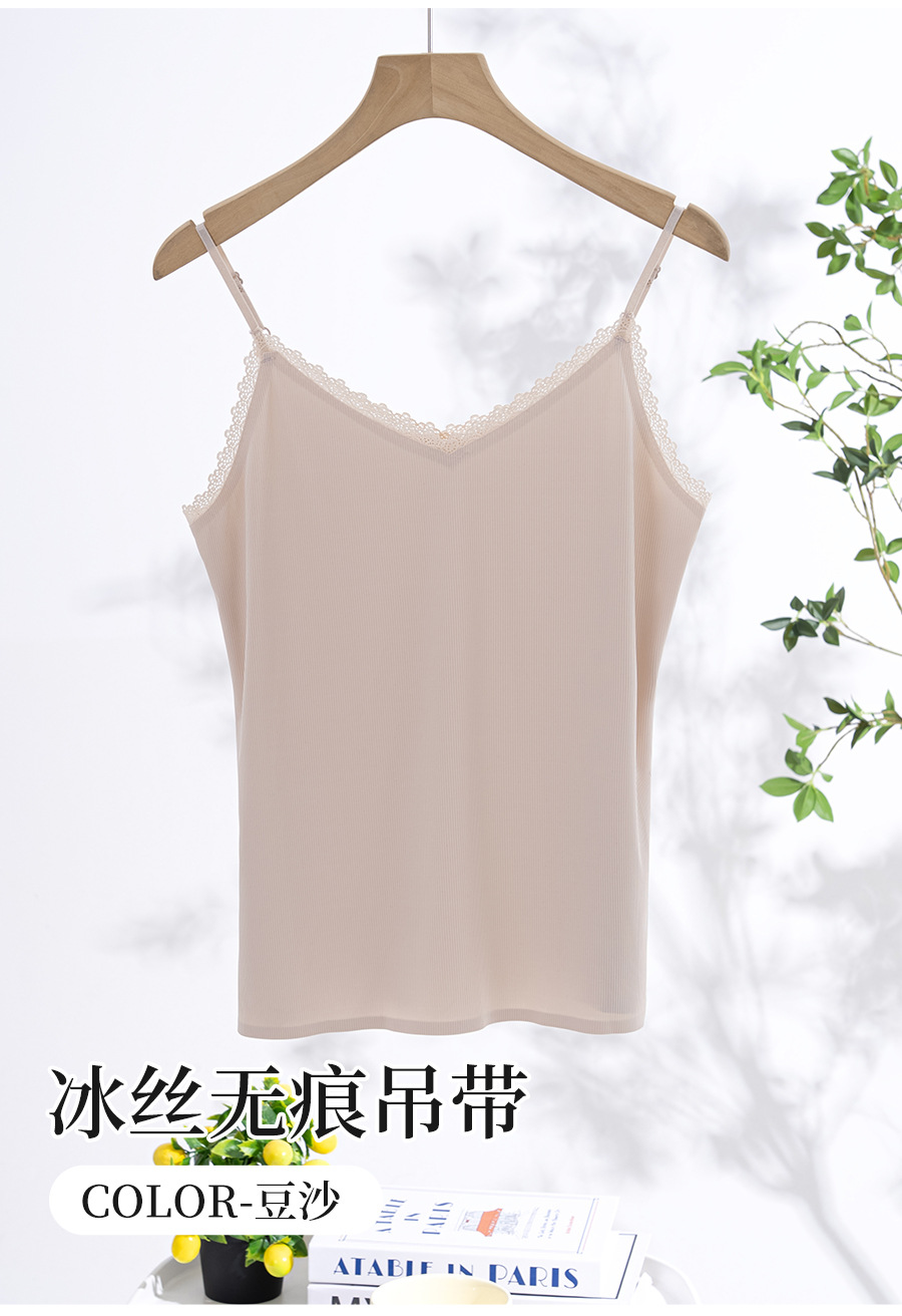 스레드 아이스 실크 캐미솔, 심리스 시원한 원단, 얇은 이너 레이어, 홈 뷰티 백 레이스 브이넥 캐미솔