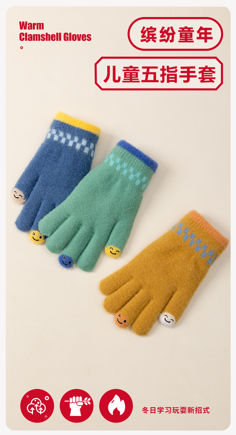 어린이 겨울 장갑, 남아 여아용, 따뜻하고 벨벳 안감, 두꺼운, 가을 겨울용, 학생용, 다섯 손가락 터치스크린 가능, 학생용 장갑