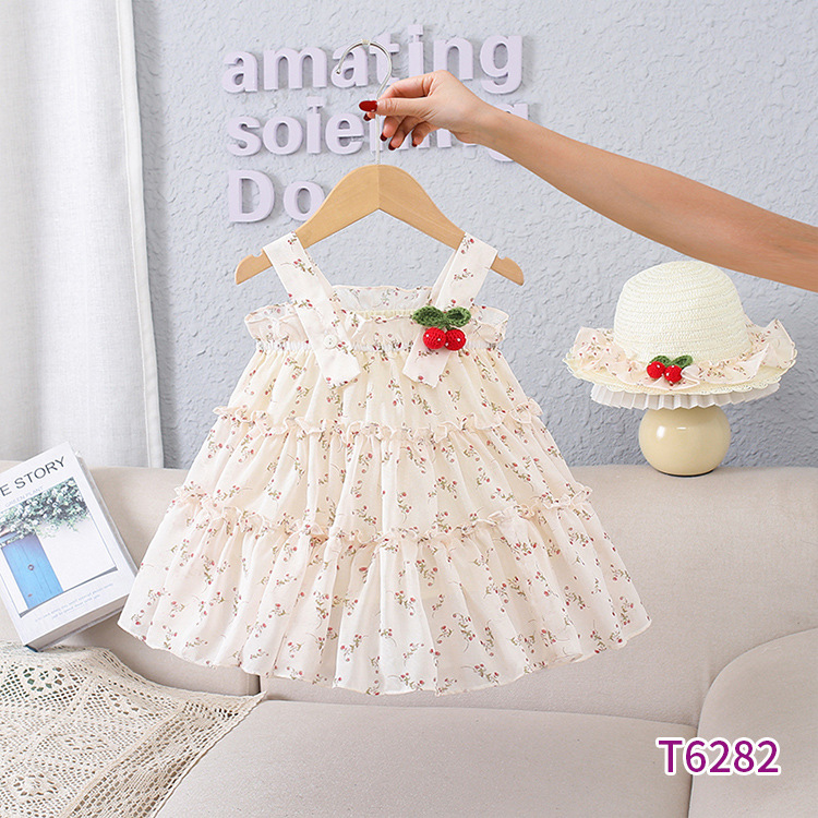 여름 새 여자 드레스, 세련된 서스펜더 꽃무늬 아기 소녀 스커트, 어린이 조끼 드레스, 공주 드레스