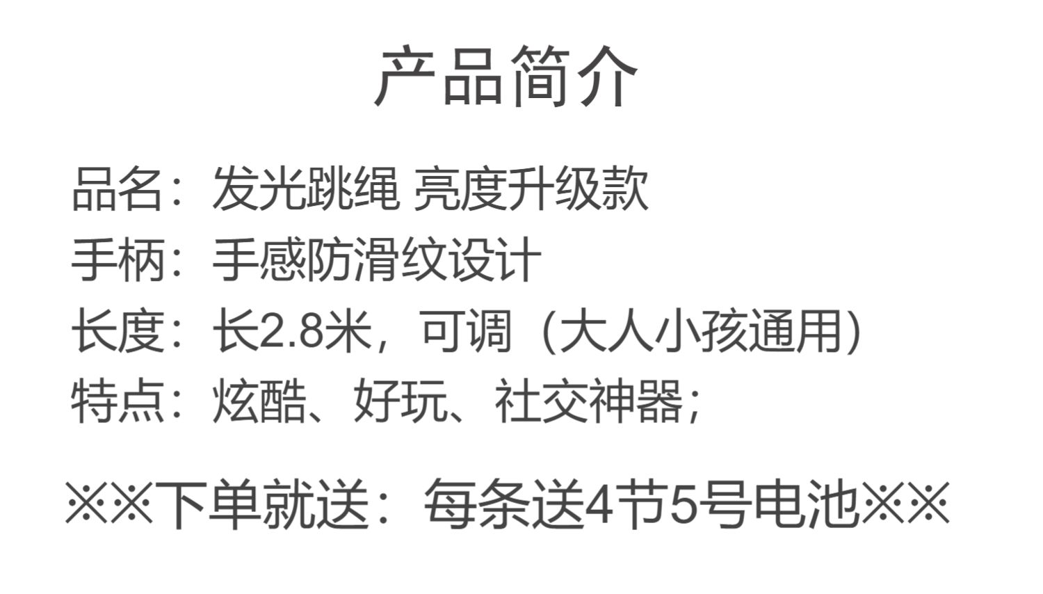 • 하늘색 - 다채로운 발광 줄넘기, 광섬유 도광 로프, 업그레이드된 밝기, 다색 조절 가능, 충전식 버전