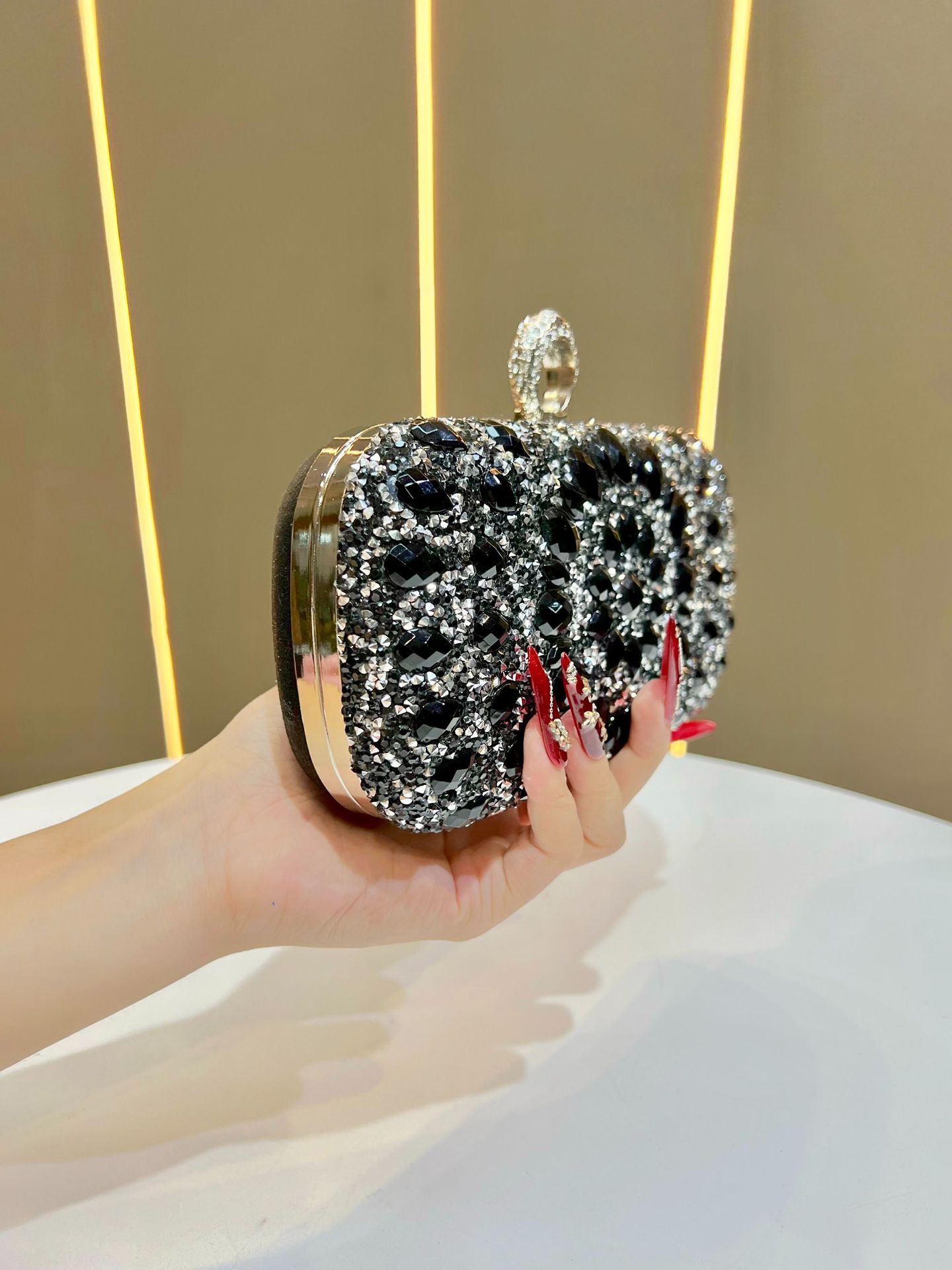 새로운 다이아몬드가 박힌 이브닝 백, 패셔너블한 연회 여성용 지갑, 클러치 백, 드레스 스몰 백, 다이아몬드가 가득한 숄더 크로스백스토어 가기