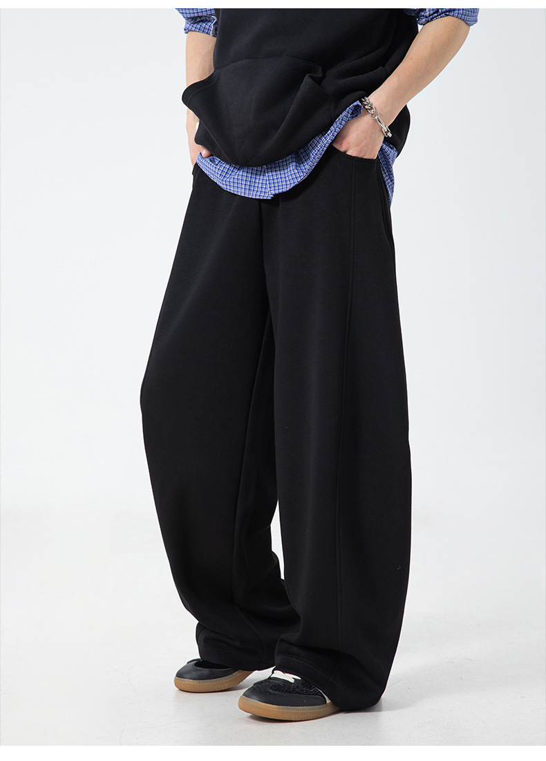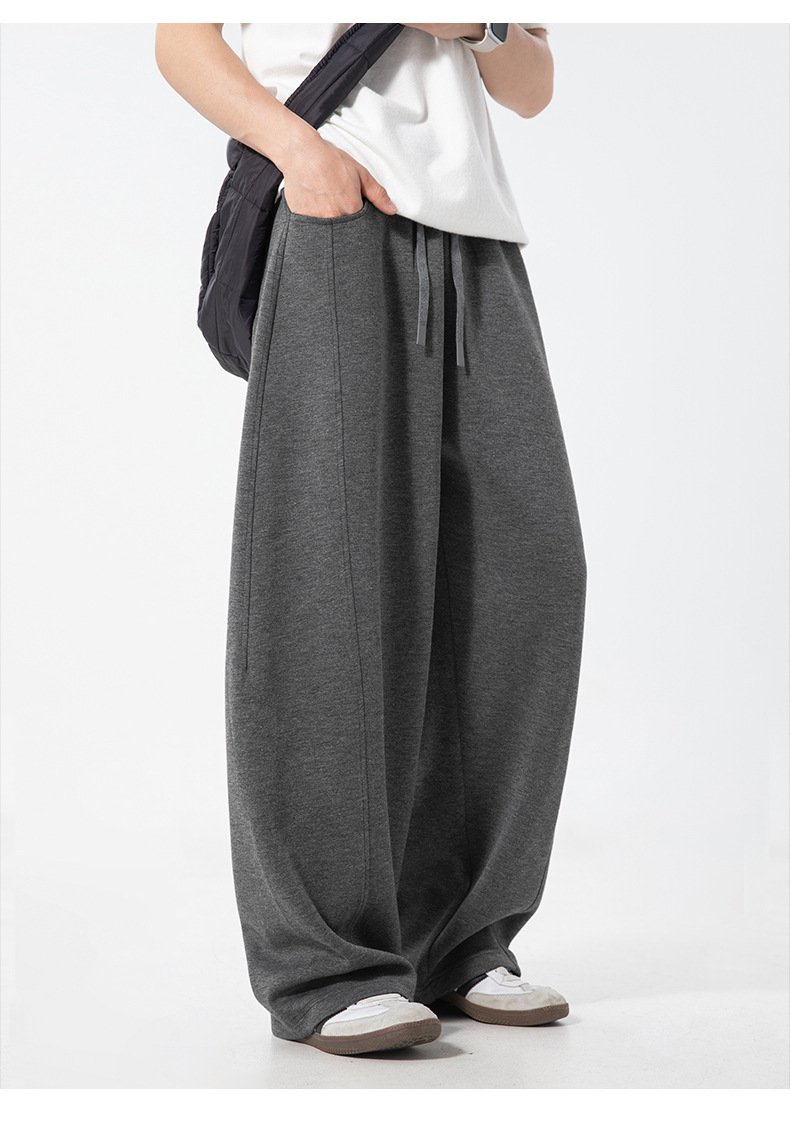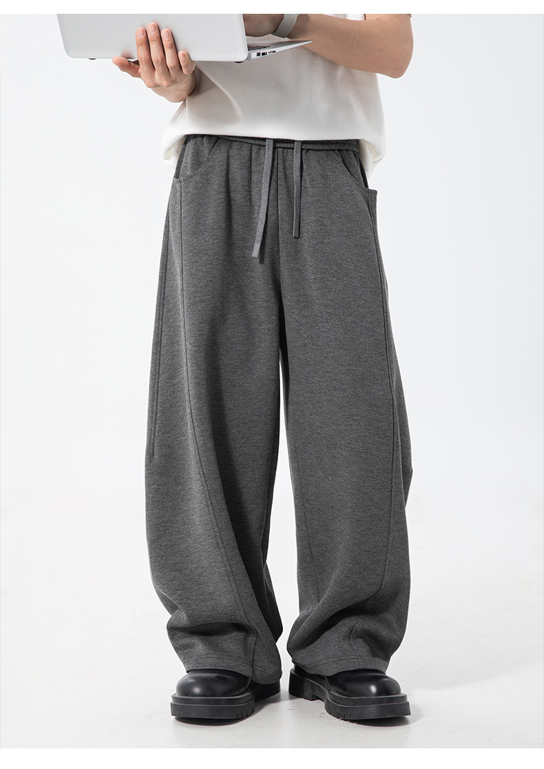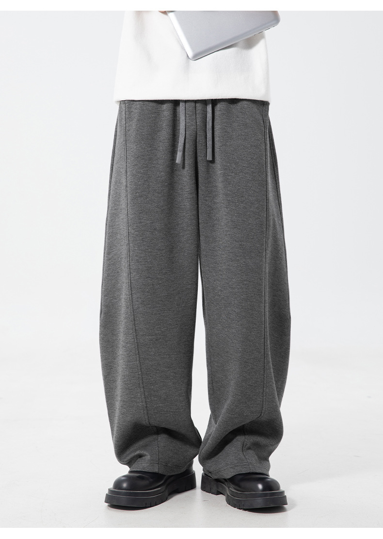 분할 스티치 질감 캐주얼 팬츠 남성용 가을 신상 실루엣 벤드 팬츠 드레이프 루즈핏 아메리칸 스포츠 팬츠