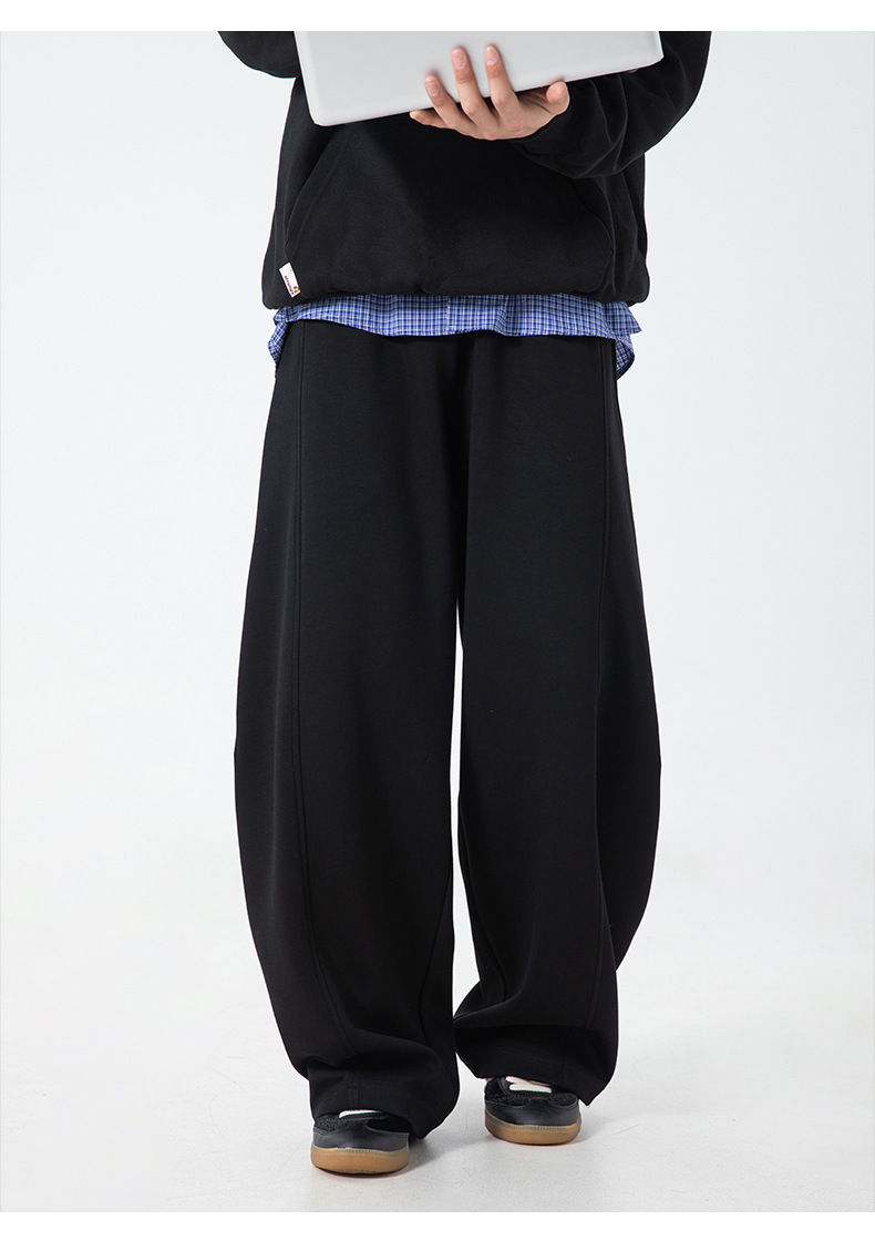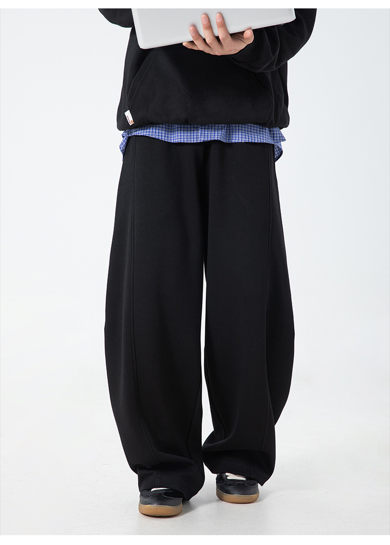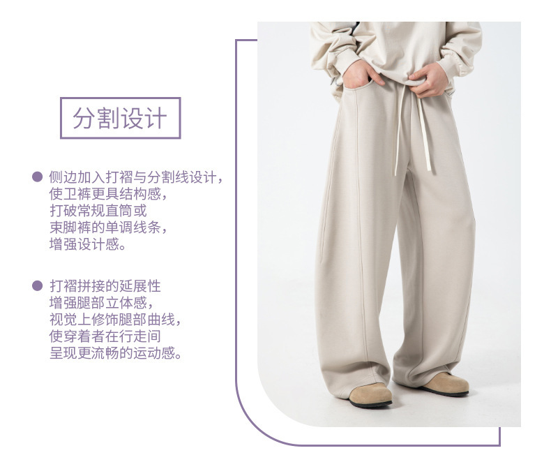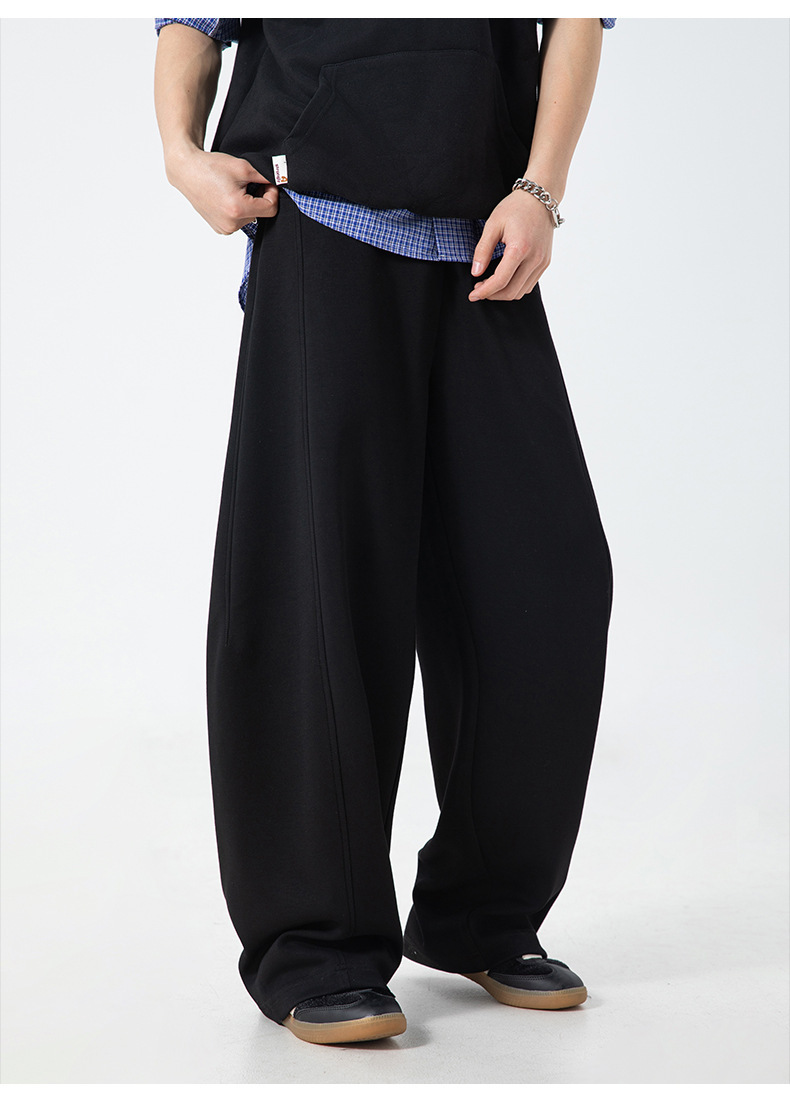 분할 스티치 질감 캐주얼 팬츠 남성용 가을 신상 실루엣 벤드 팬츠 드레이프 루즈핏 아메리칸 스포츠 팬츠