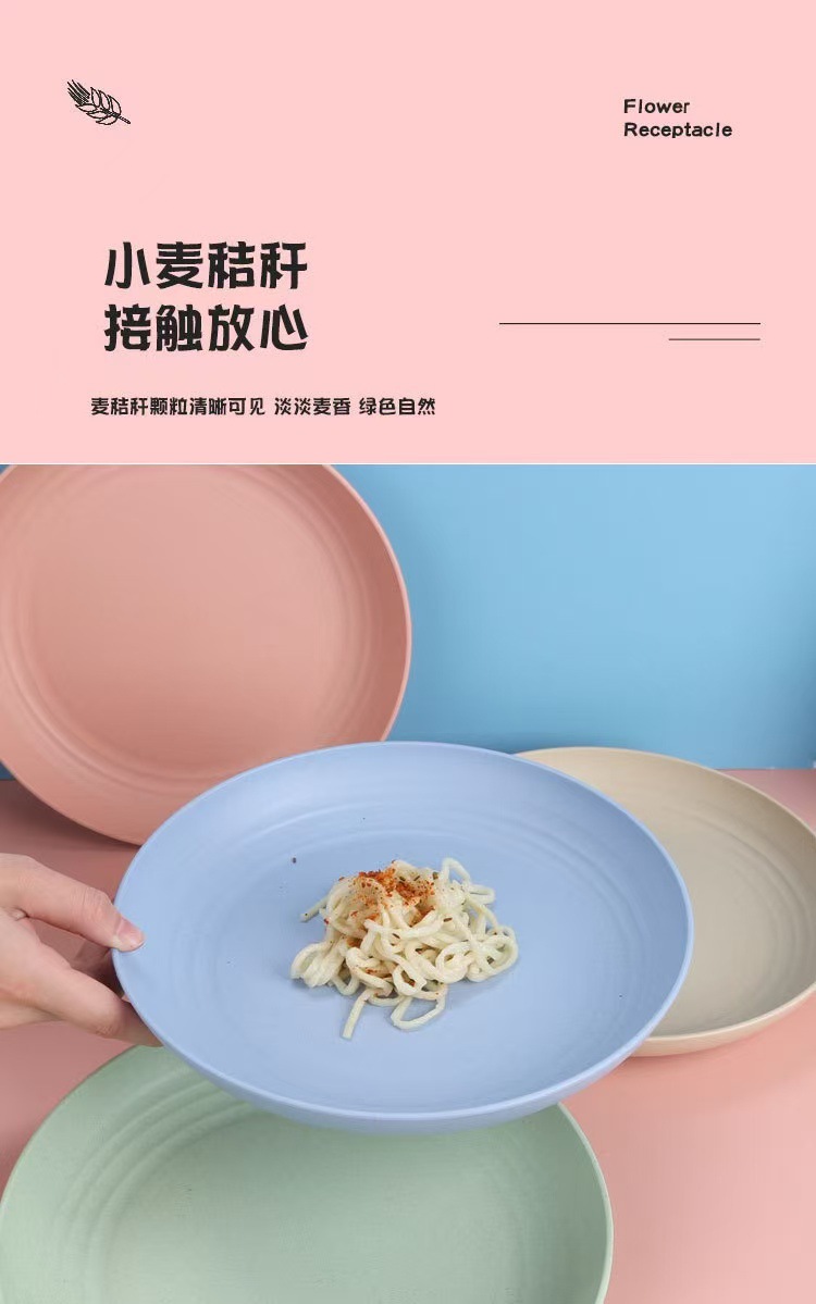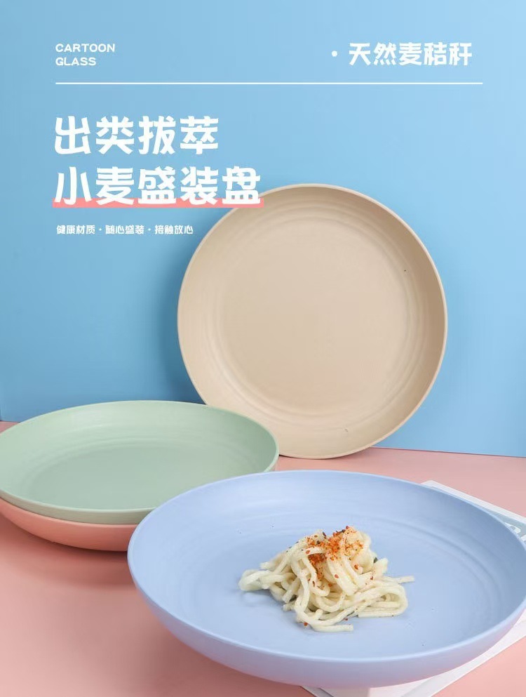 밀짚 식기 23CM 라운드 대형 접시 가정용 야외 바베큐 레스토랑 대외 무역 플라스틱 접시 상업 도매스토어 가기