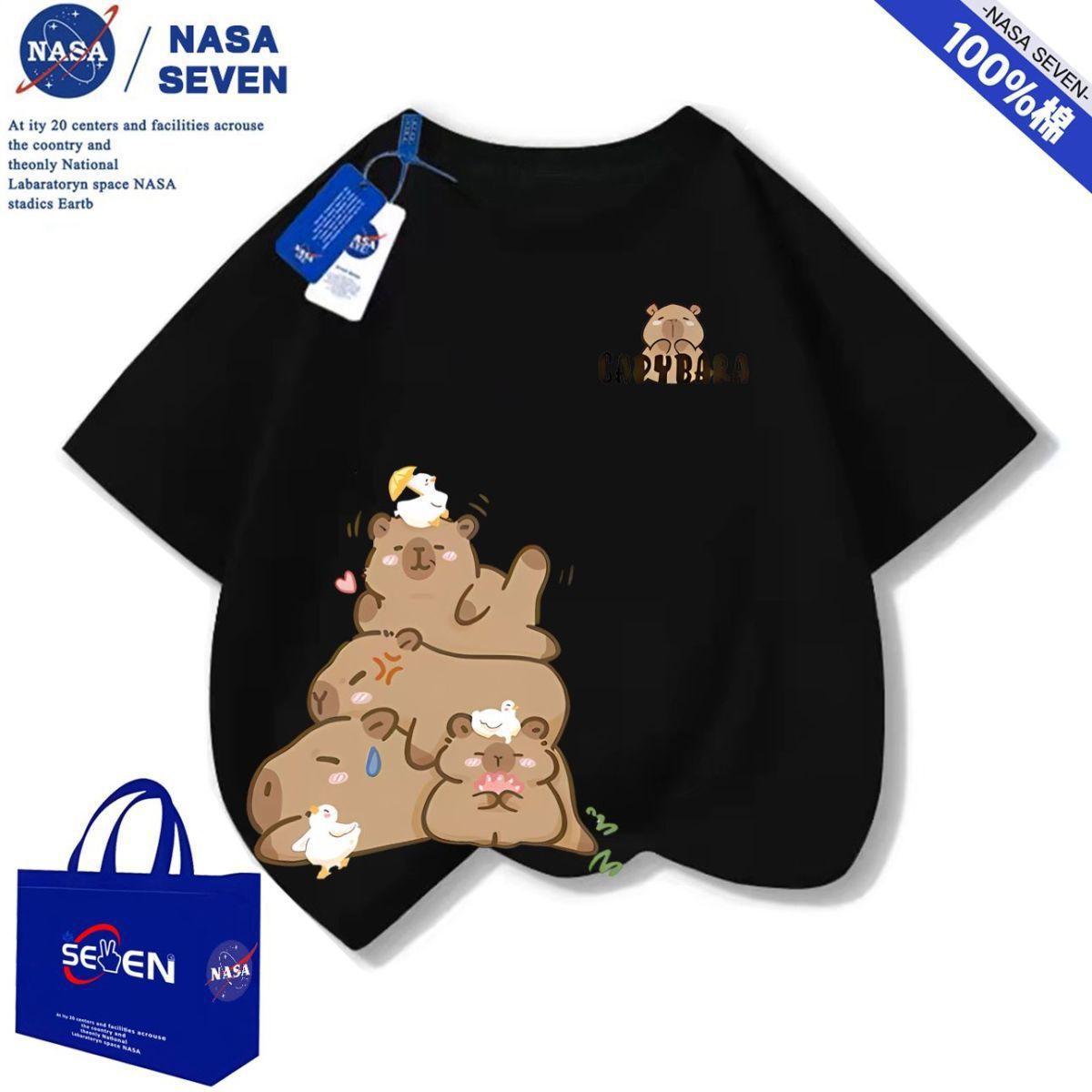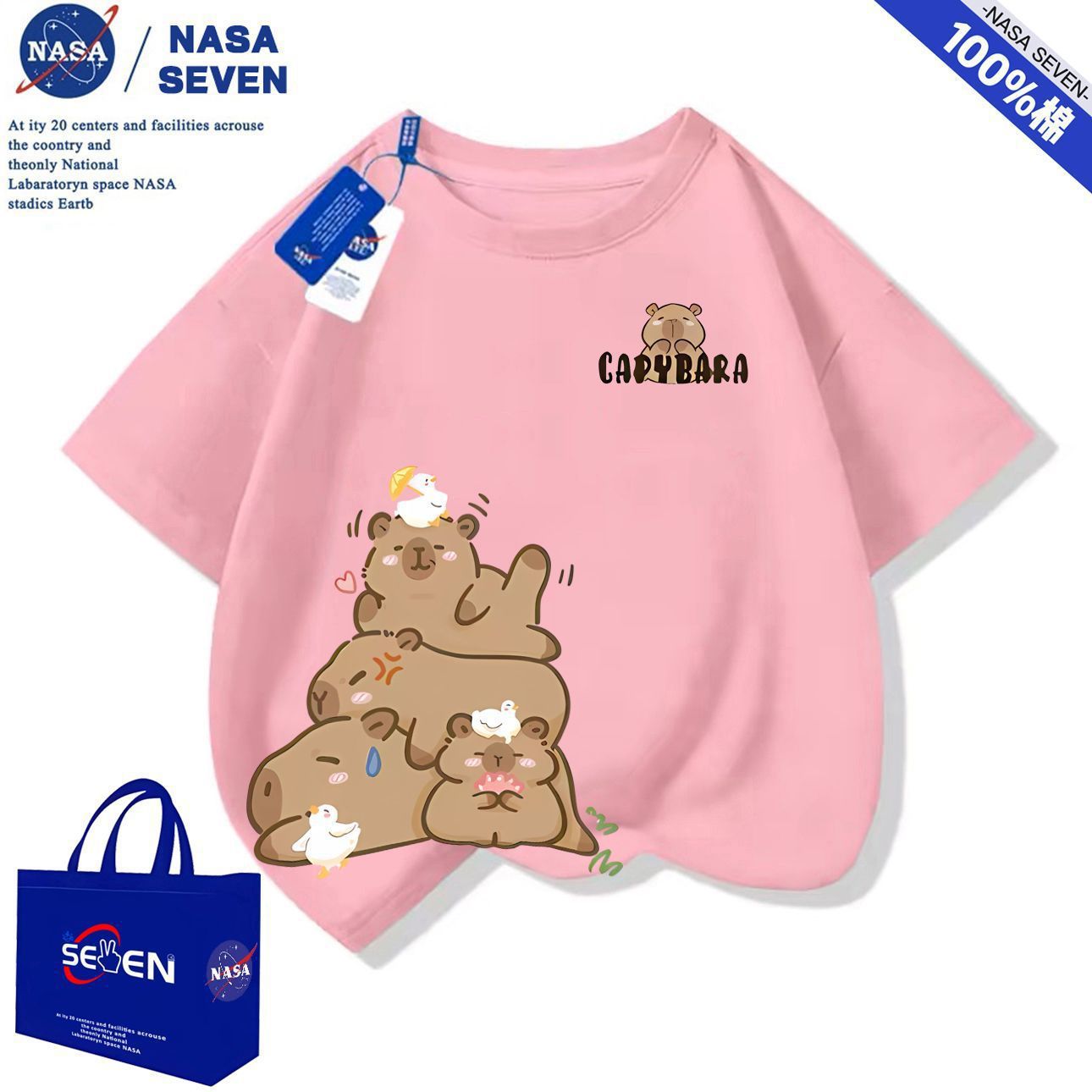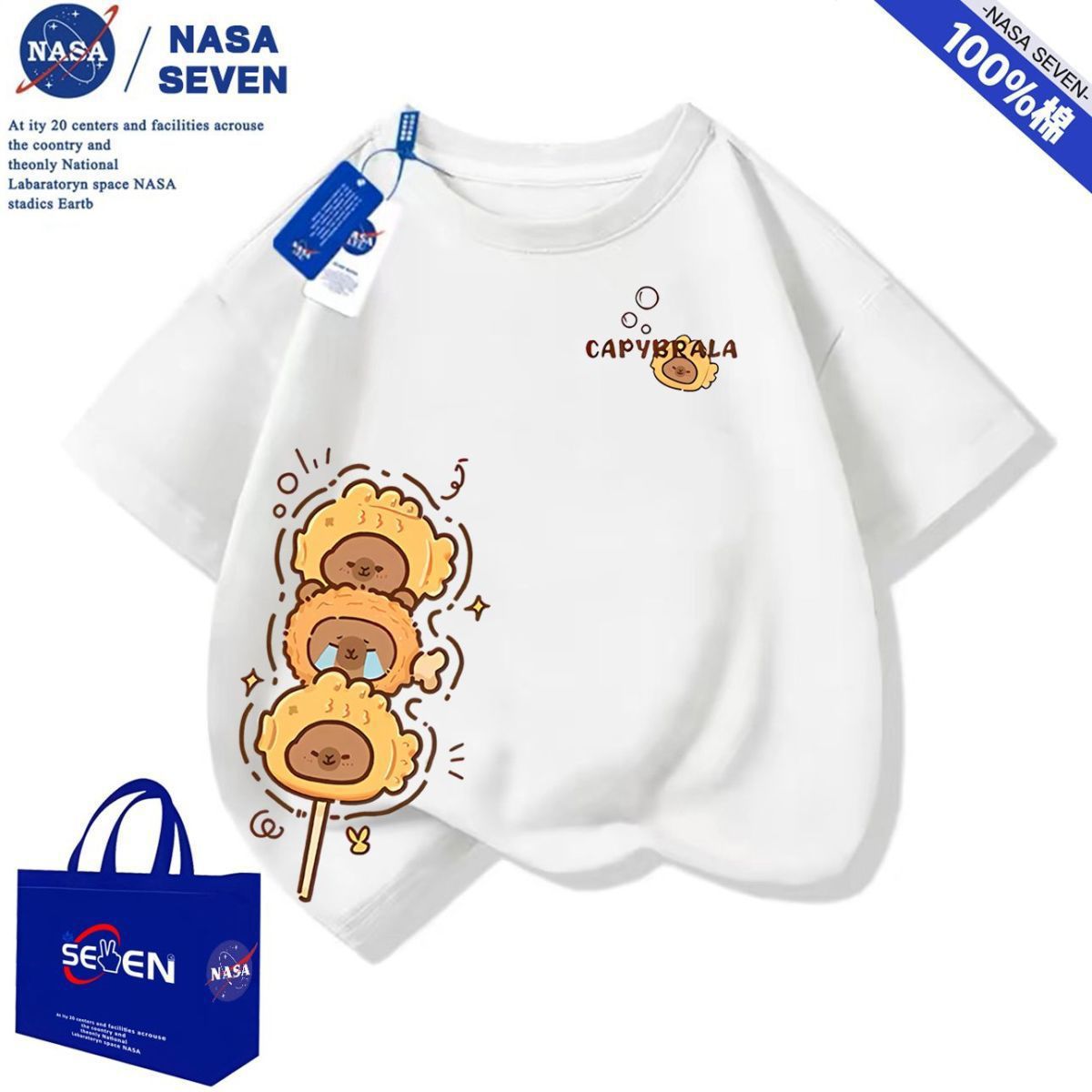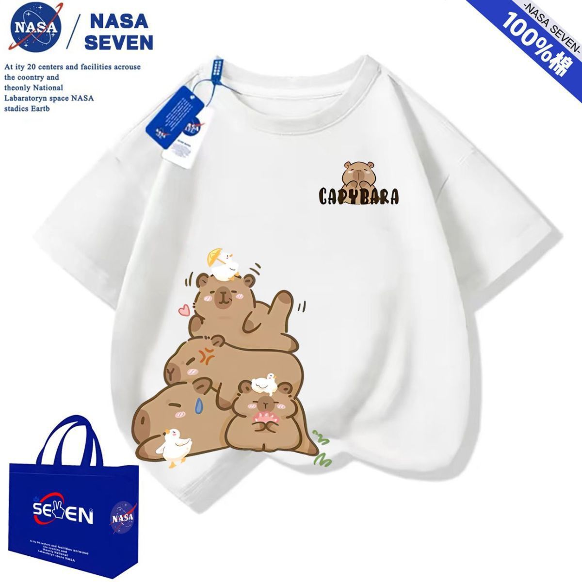 NASA 여름 새 Kapibara 반팔 소년 소녀 귀여운 만화 면 티셔츠 탑은 어린이에게 다재다능합니다.스토어 가기