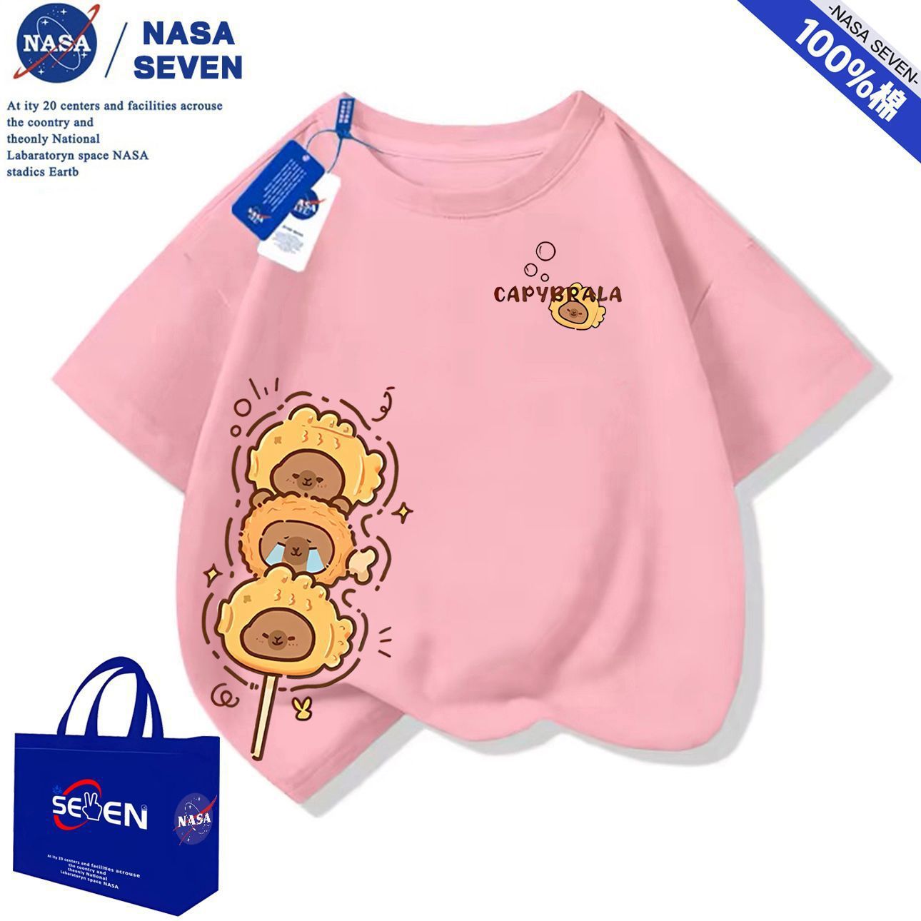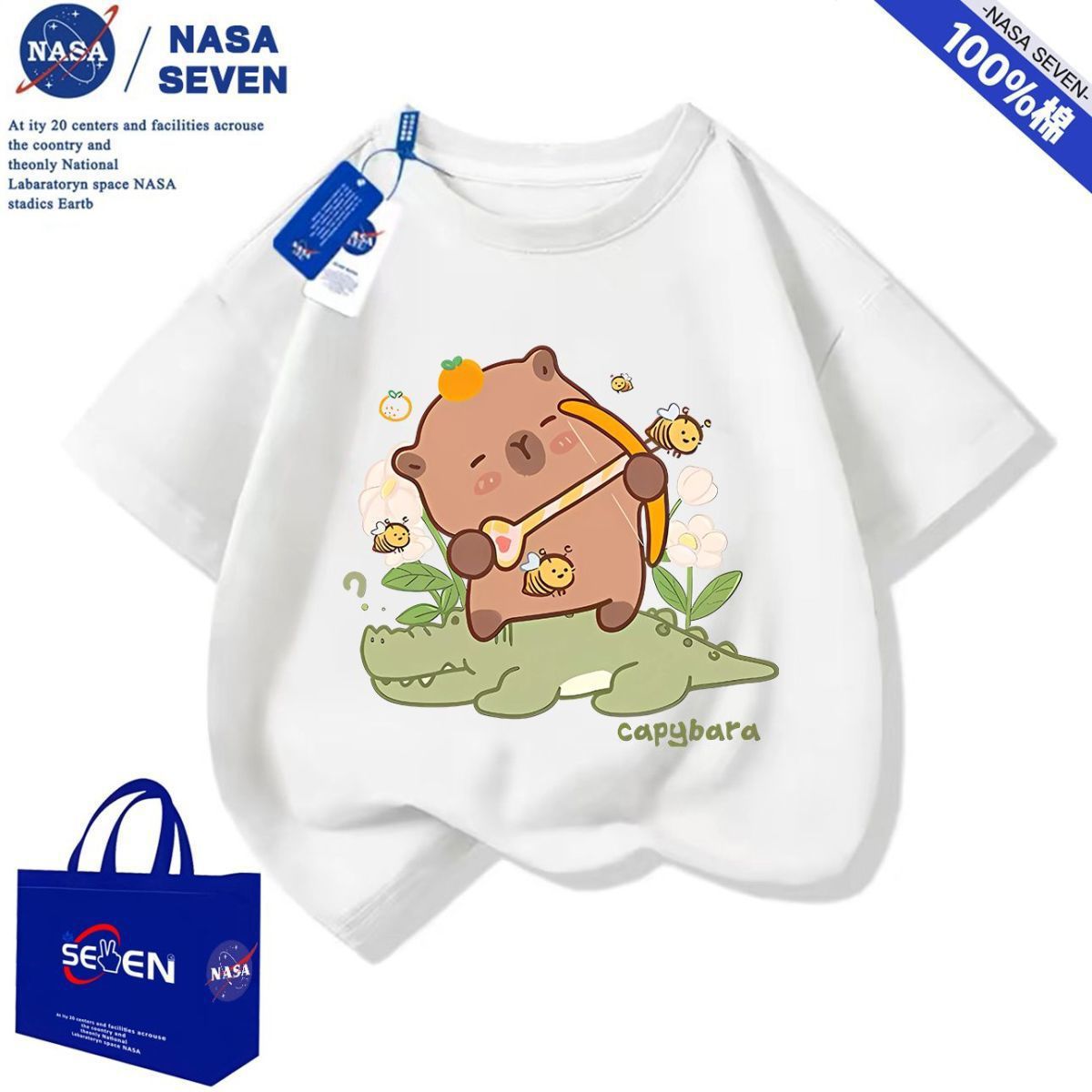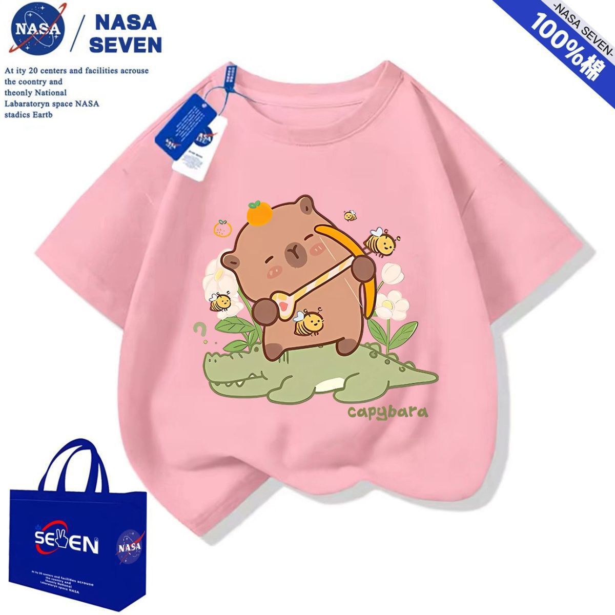 NASA 여름 새 Kapibara 반팔 소년 소녀 귀여운 만화 면 티셔츠 탑은 어린이에게 다재다능합니다.스토어 가기