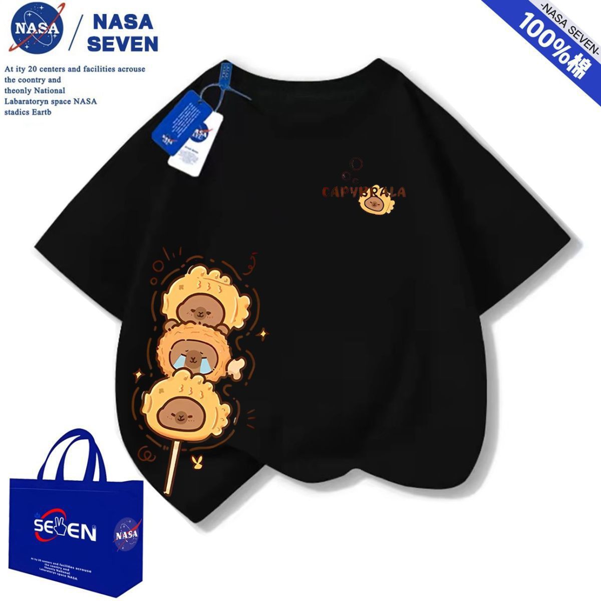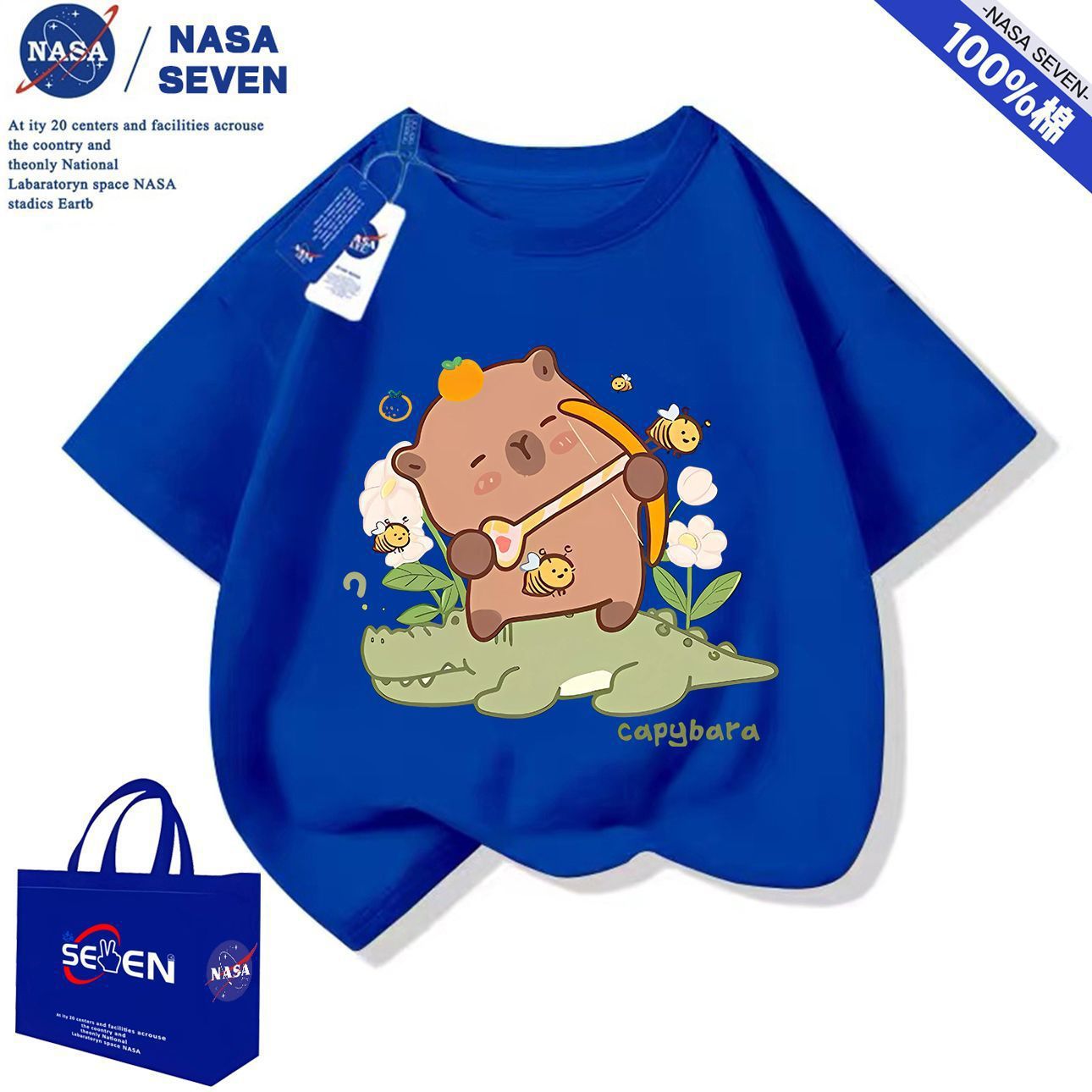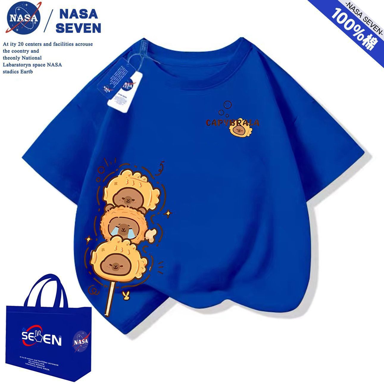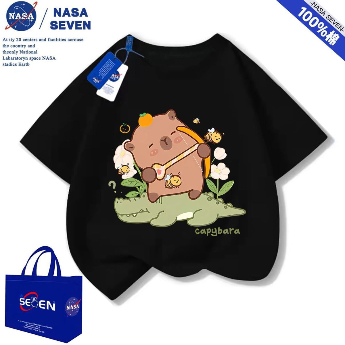 NASA 여름 새 Kapibara 반팔 소년 소녀 귀여운 만화 면 티셔츠 탑은 어린이에게 다재다능합니다.스토어 가기